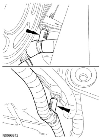 10. Disconnect the lower radiator hose from the thermostat housing and position it aside.