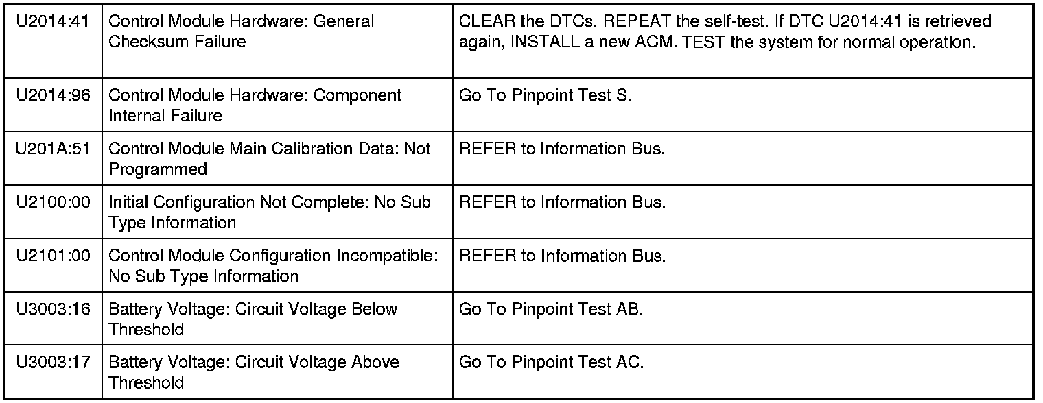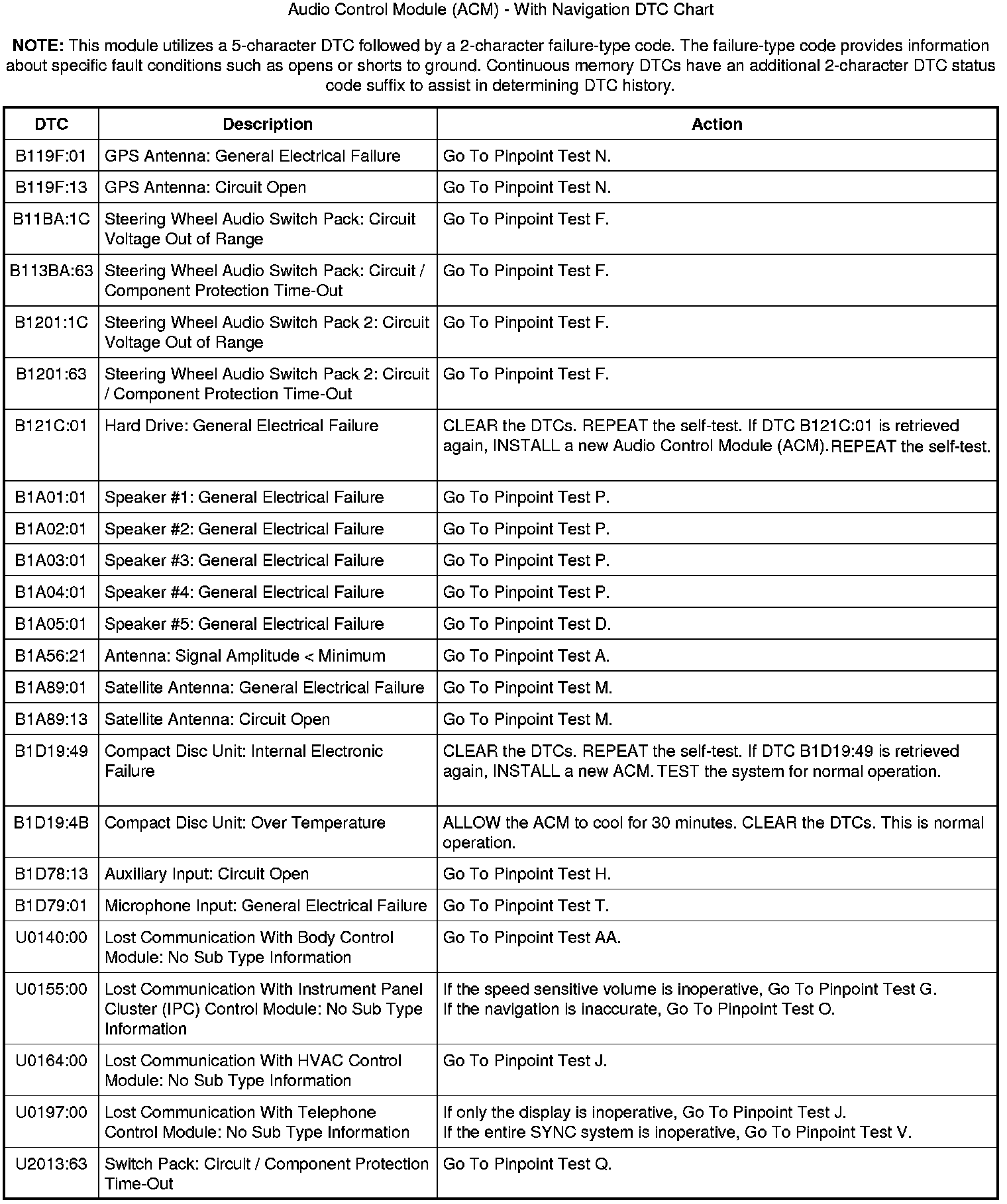Audio Control Module (ACM) - With Navigation DTC Chart