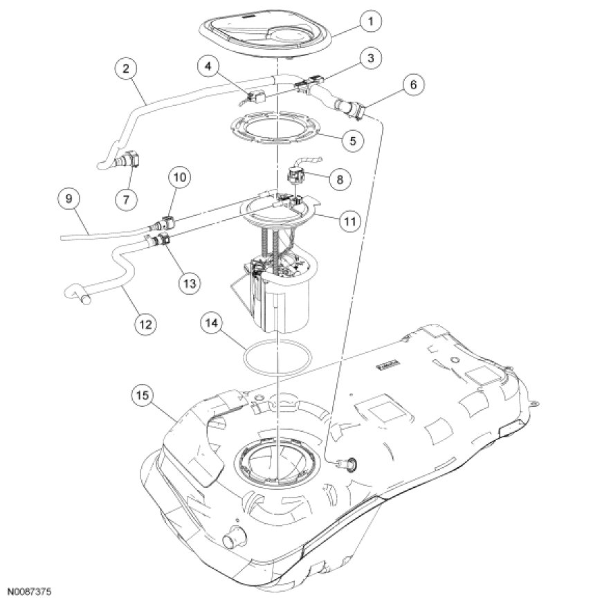 Fuel Tank and Filler Pipe - Exploded View