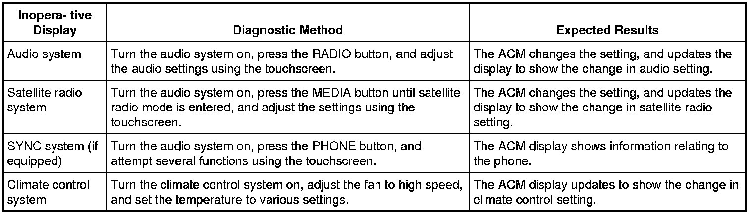- Observe the inoperative ACM display while carrying out the indicated diagnostic method as follows: