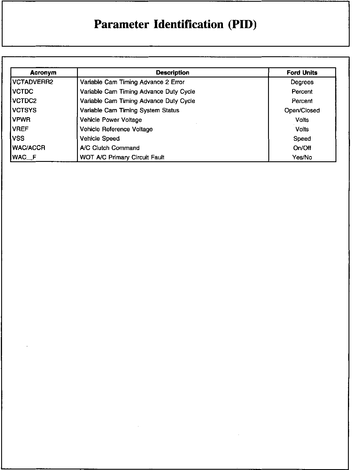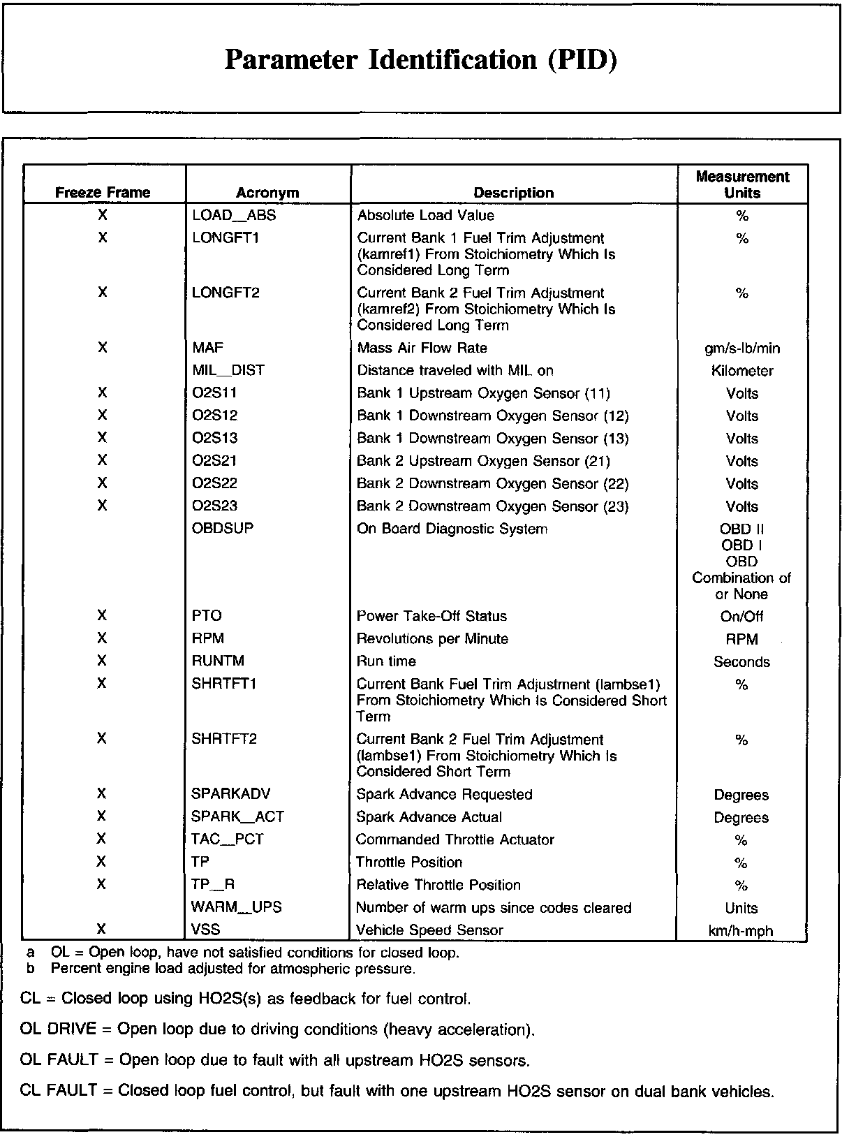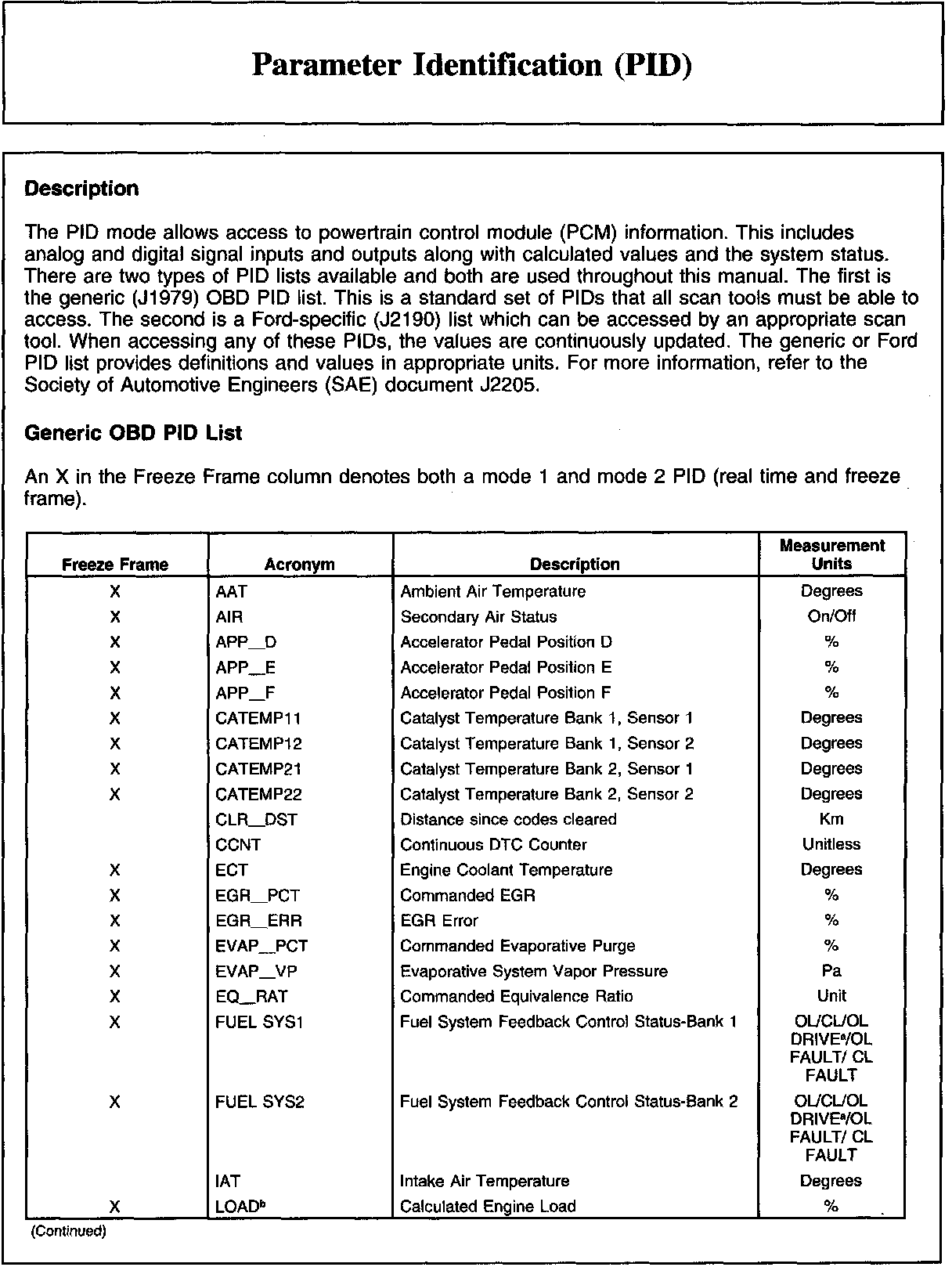 Parameter Identification (PID)Description And Generic OBD List: