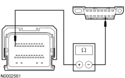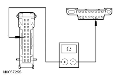 - Measure the resistance between the PCM C175b-11, circuit VDB04 (WH/BU), harness side and the DLC C251-6, circuit VDB04 (WH/BU), harness side.