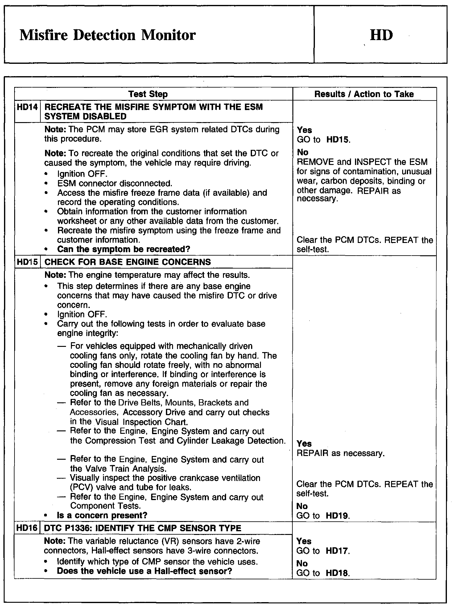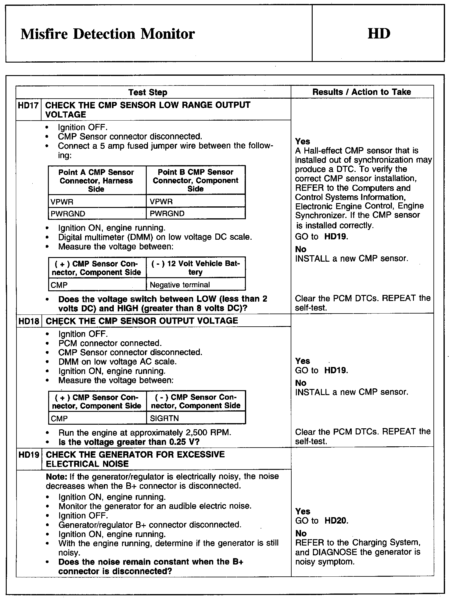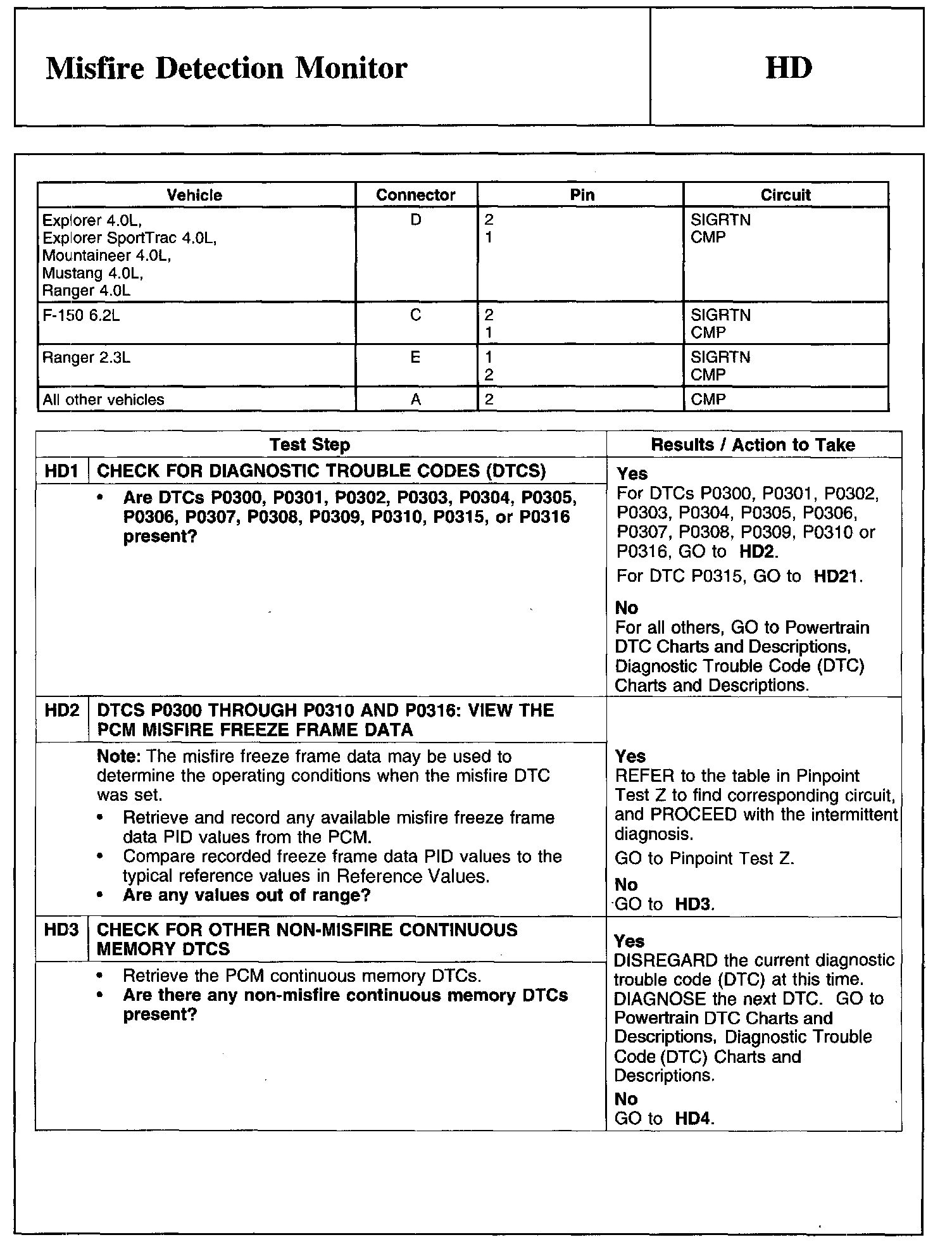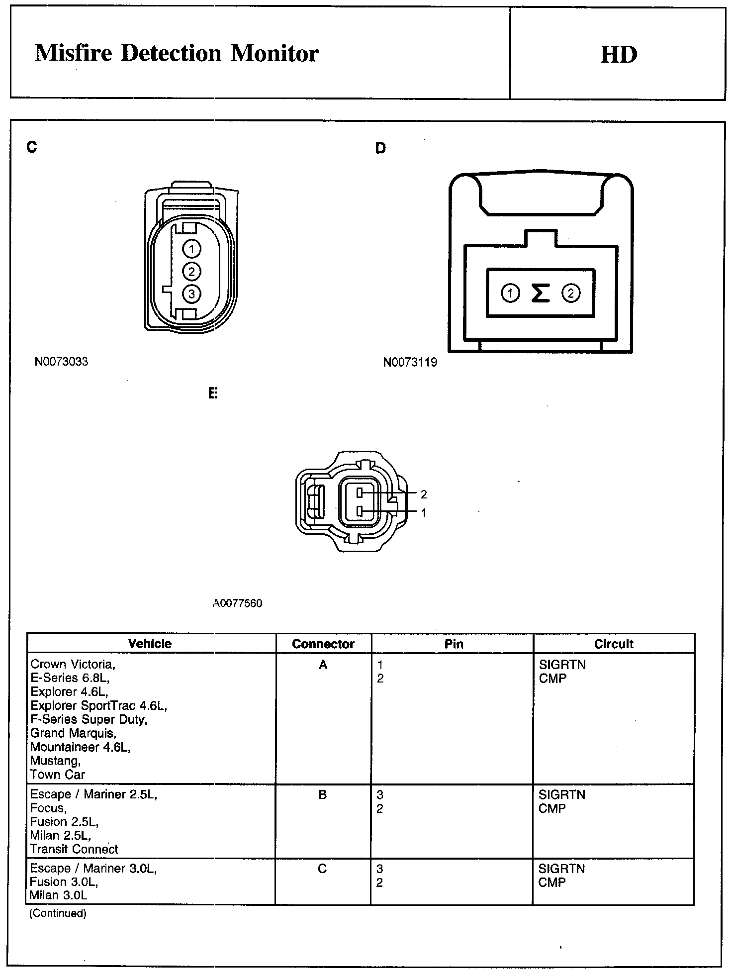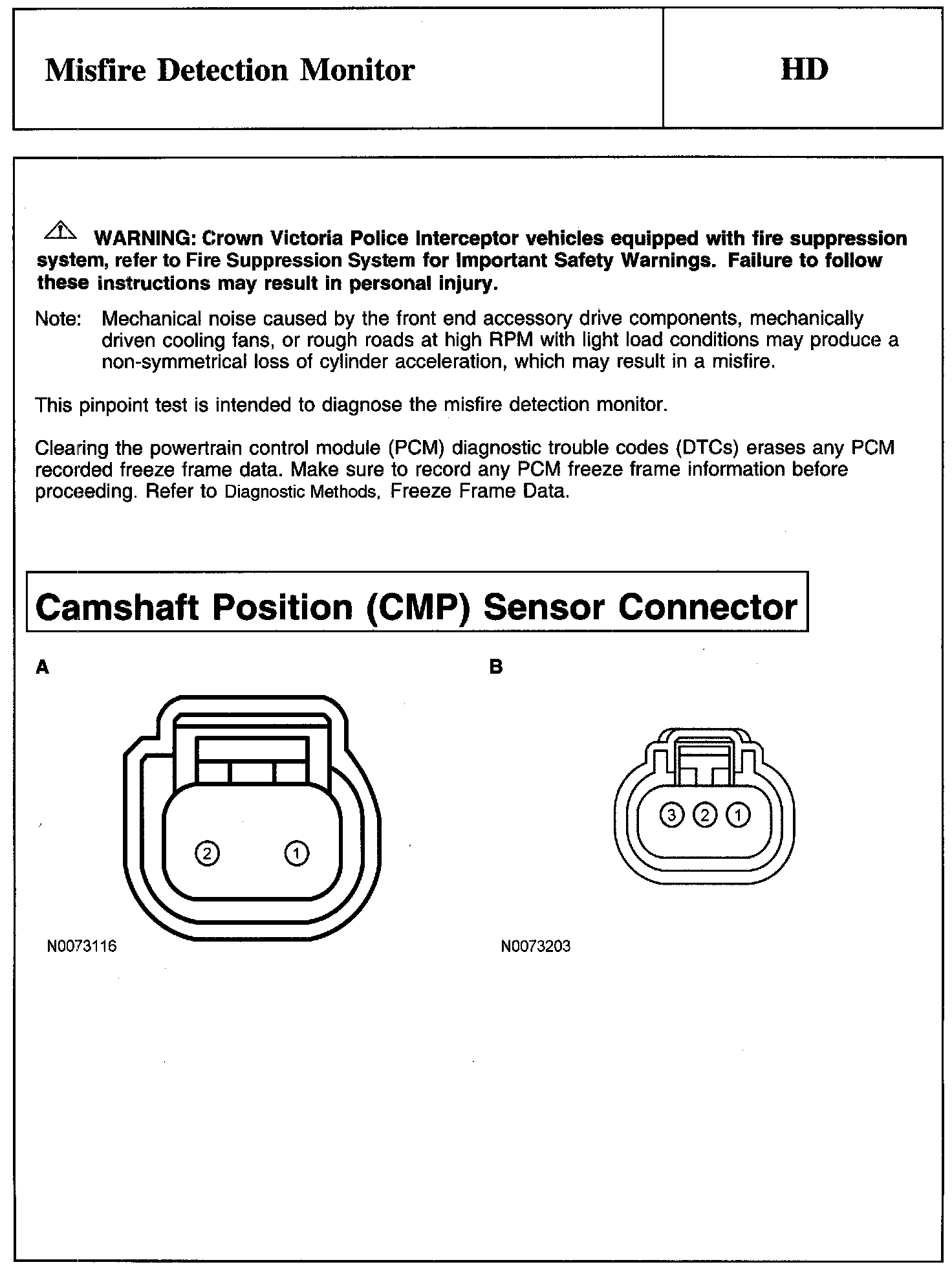 PINPOINT TEST HD: MISFIRE DETECTION MONITORWarning, Note And Camshaft Position (CMP) Sensor Connector: