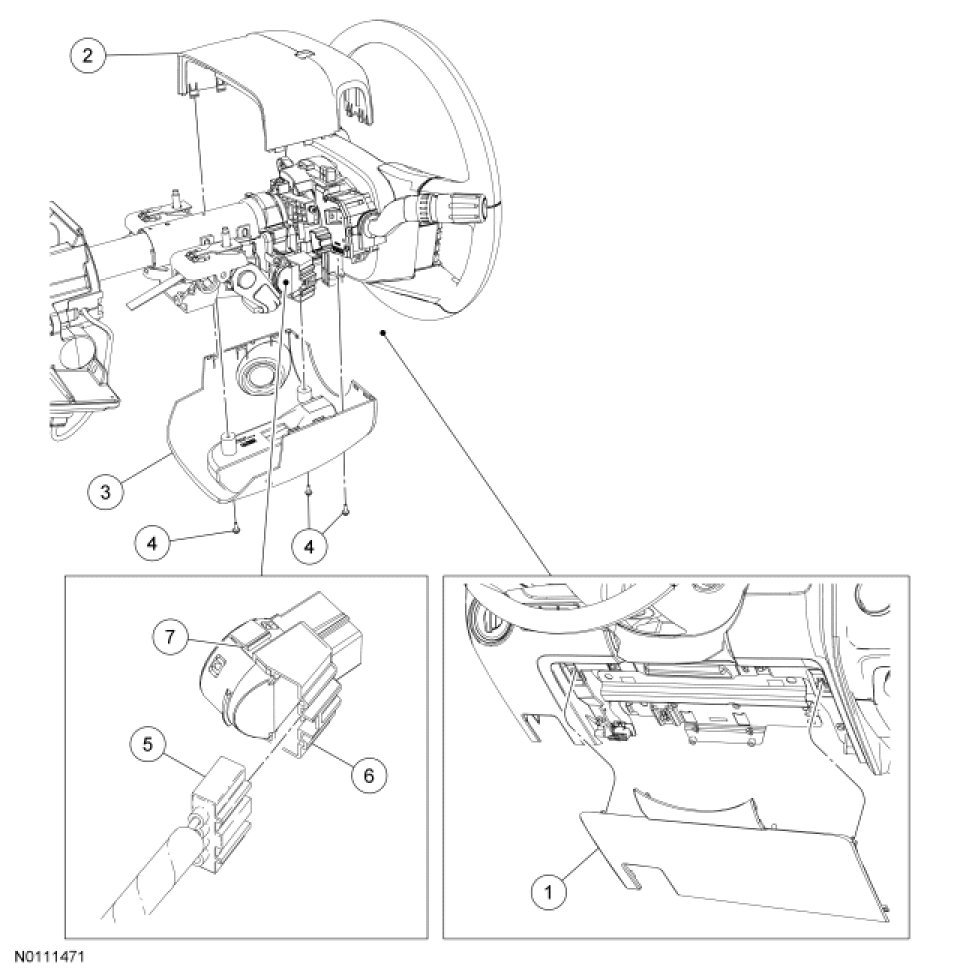 4. Remove the upper and lower steering column shrouds. For additional Information, refer to Steering Column
