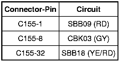 - Connect one fused jumper wire between the ABS module C155-1, circuit SBB09 (RD), harness side and the engine cooling fan C1074 pin 1, component side.