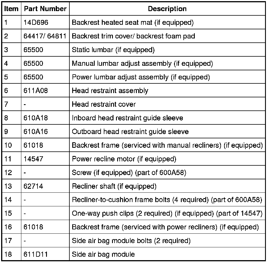 NOTE: Driver backrest shown, passenger backrest similar.