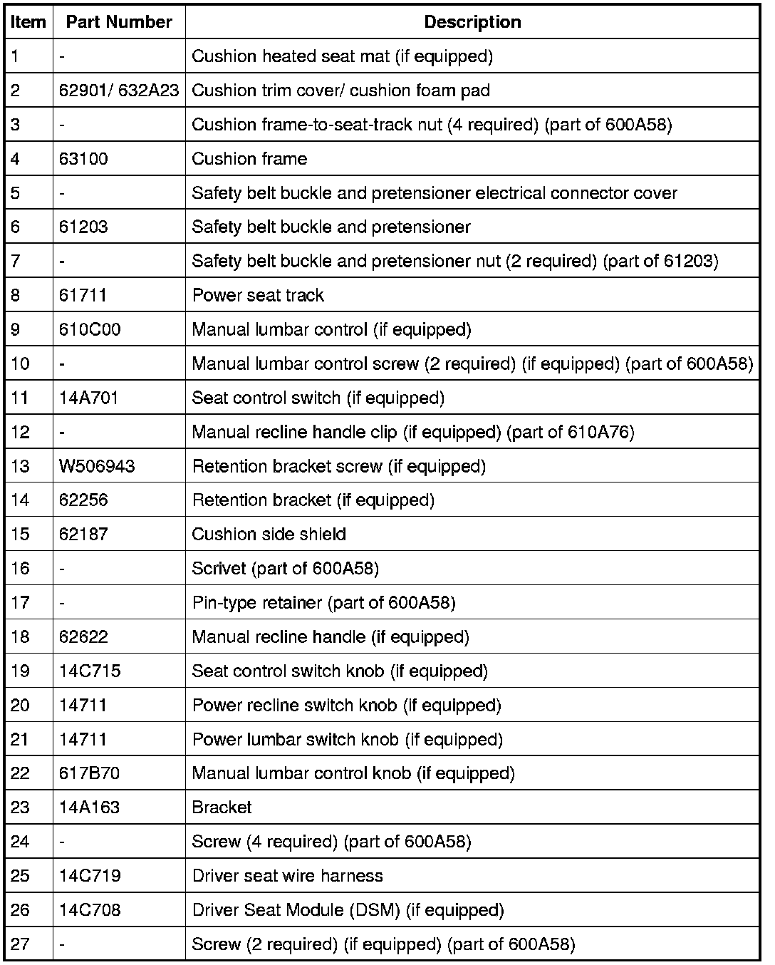 Seat - Exploded View, Front