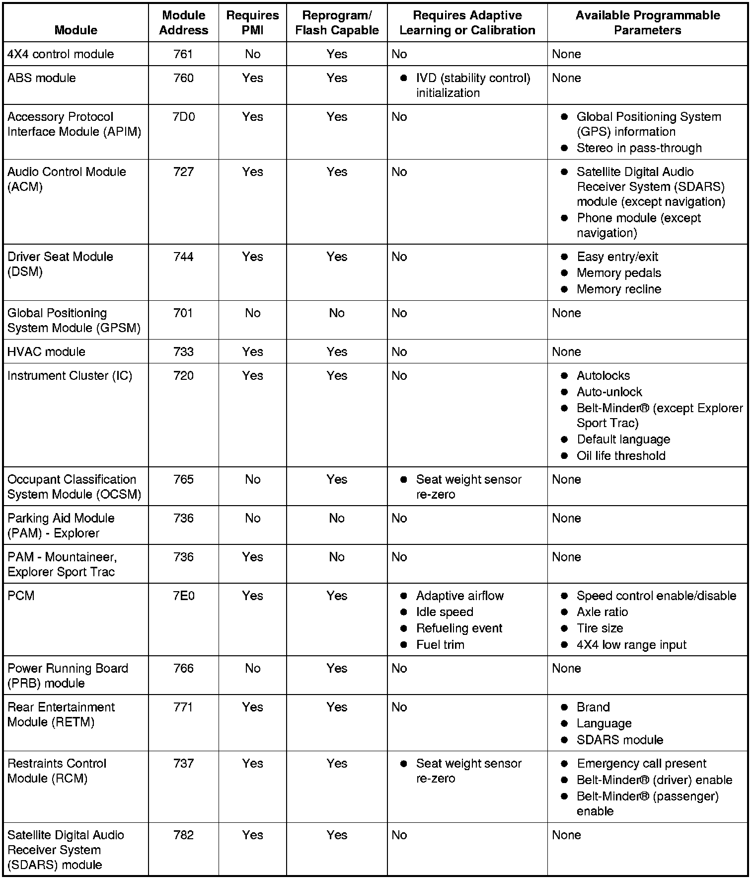 Programmable parameters are customer preference items that may be modified by the dealer via the scan tool or in some cases modified by the customer following a procedure listed in the Owner's Literature. While many configuration options may exist for a module, only a few of these options are programmable parameters.