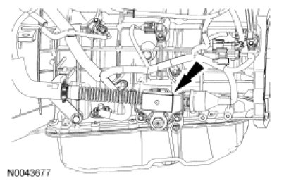 NOTE: When installing the selector lever cable end, make sure that the selector lever cable end is correctly installed onto the manual control lever. Pull back on the selector lever cable to make sure that the selector cable end is correctly installed onto the manual control lever.