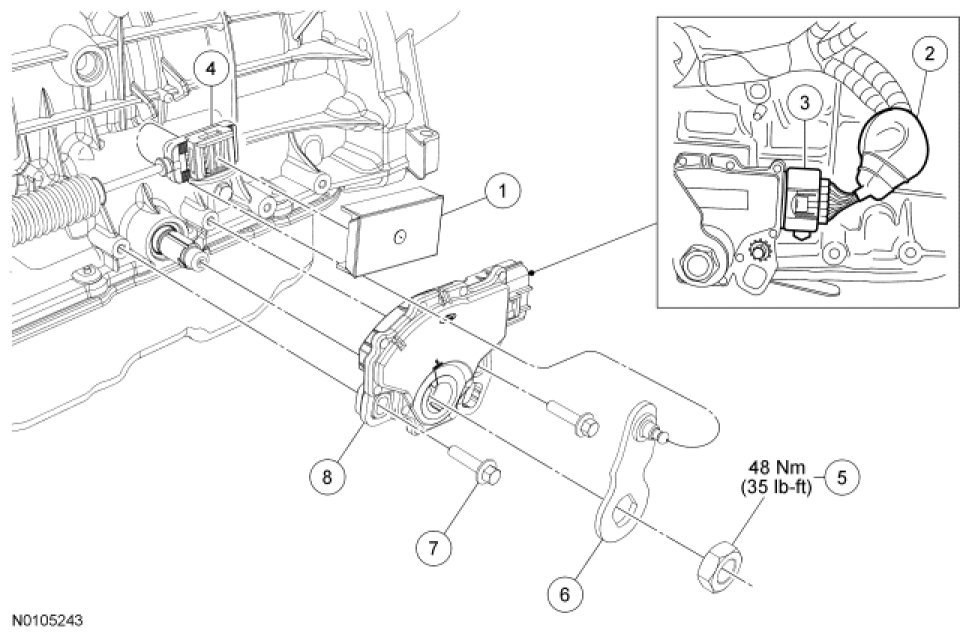 - Tighten to 48 Nm (35 lb-ft).