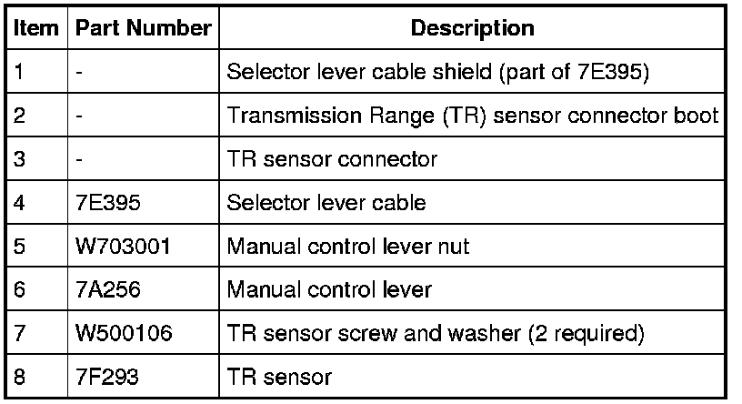 8. Verify that the selector lever cable is adjusted correctly. For additional information, refer to Automatic Transmission/Transaxle.
