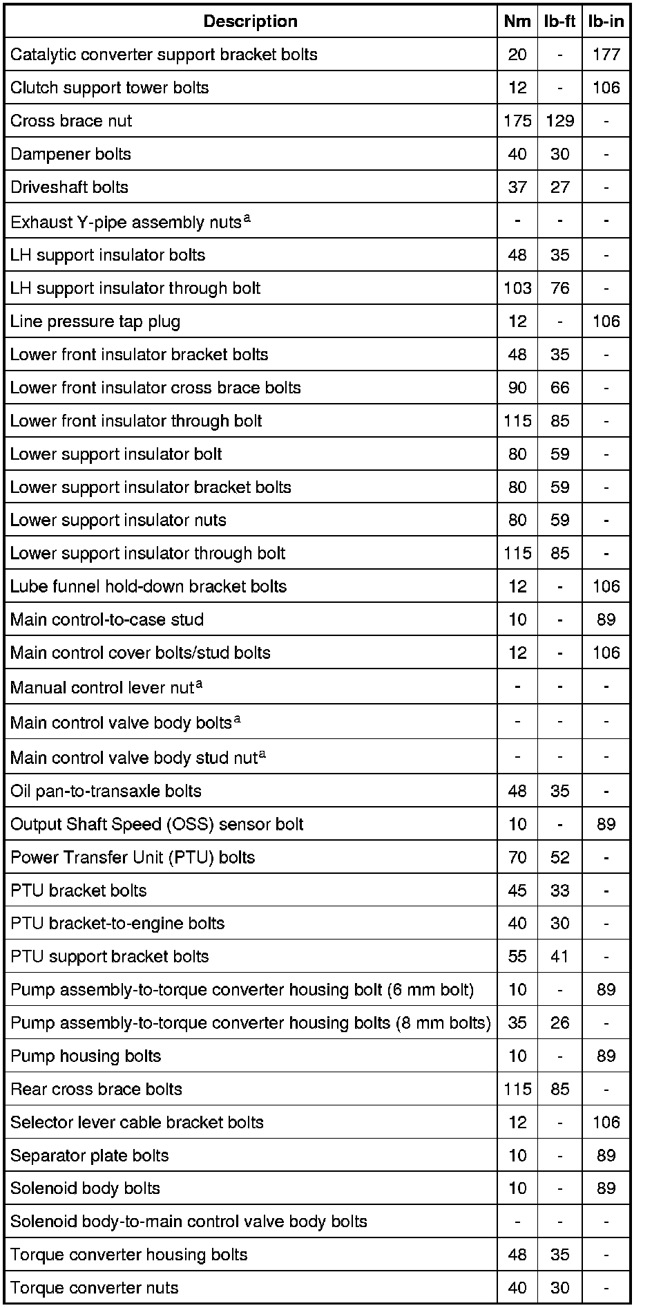 Torque Specifications