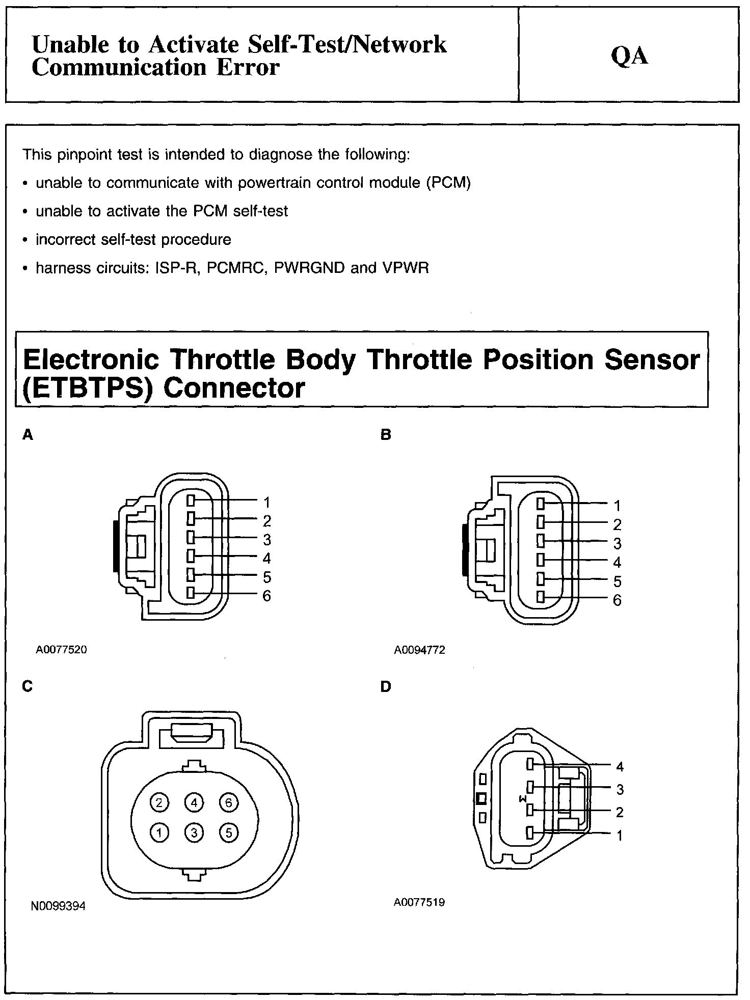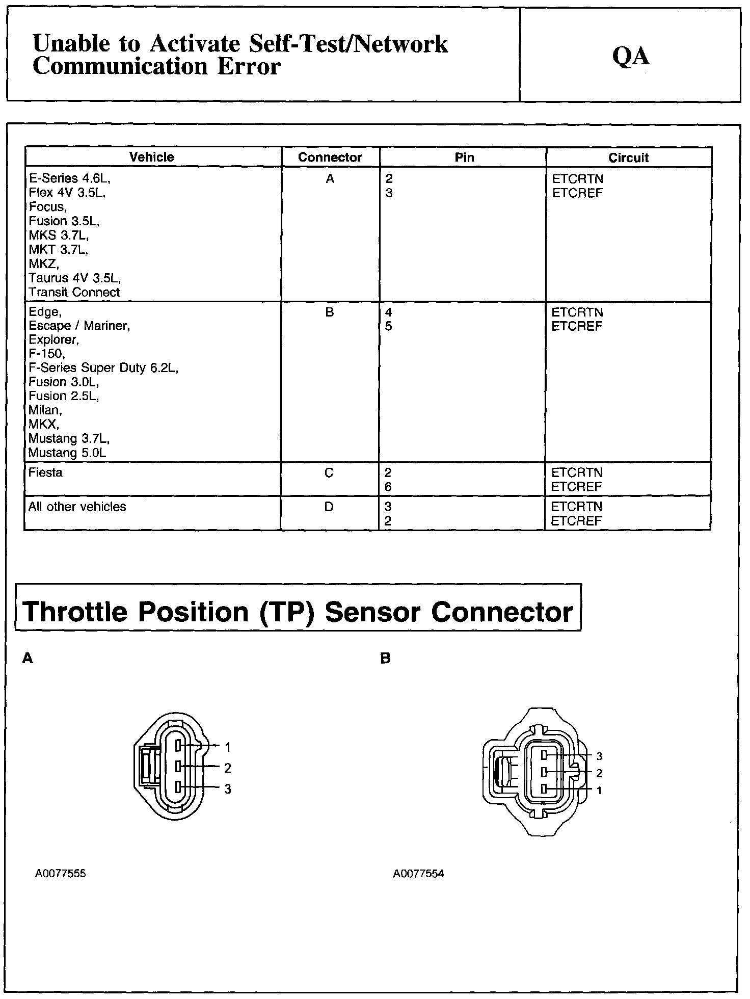 Electronic Throttle Body Throttle Position Sensor (ETBTPS) Connector And Throttle Position (TP) Sensor Connector: