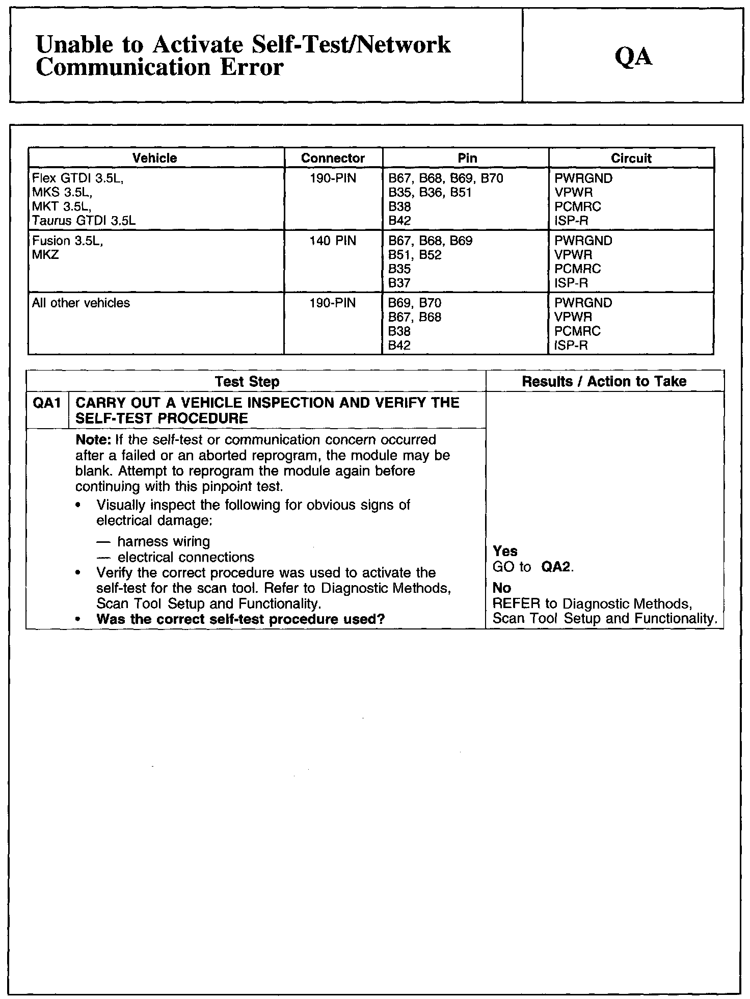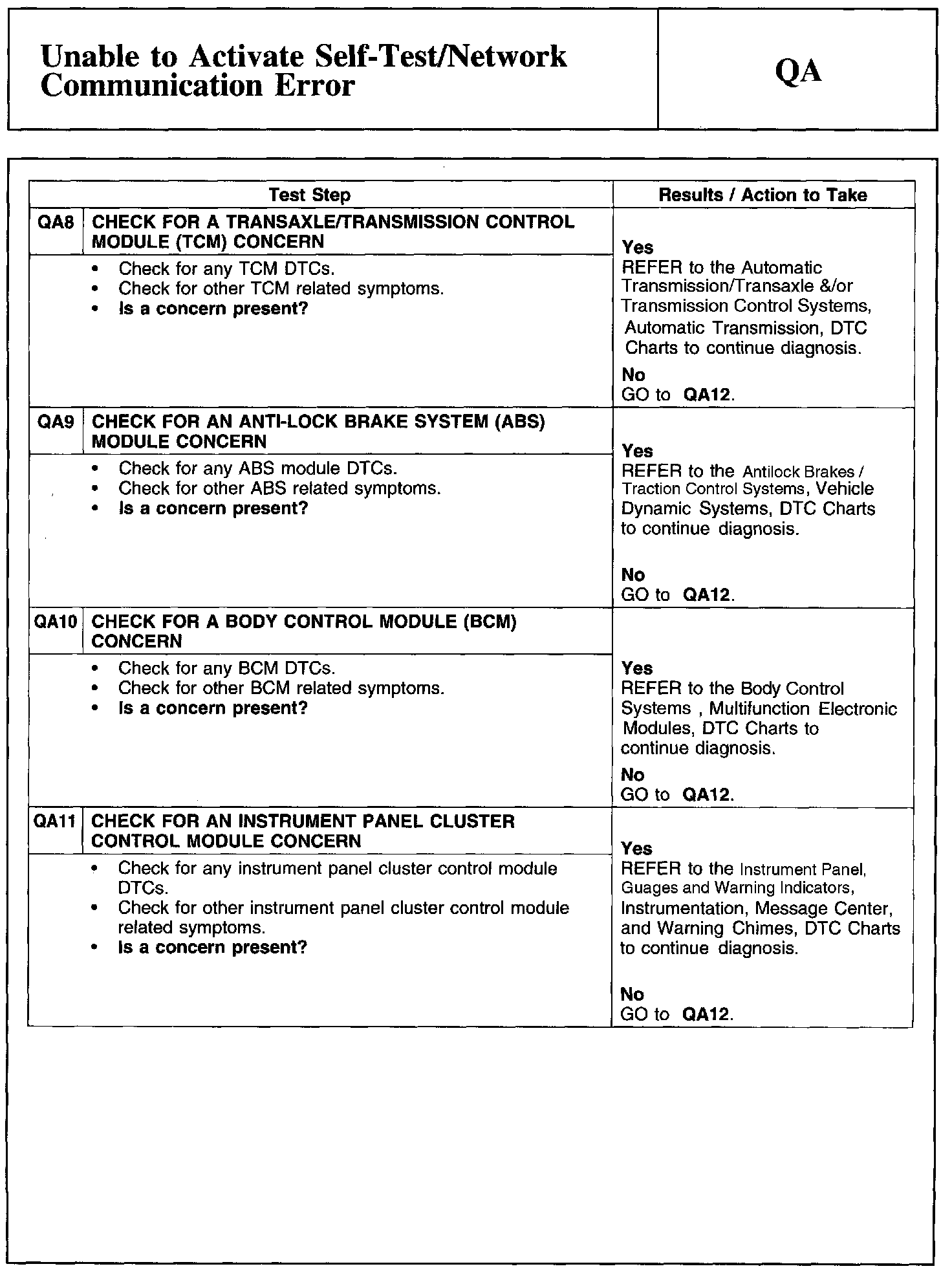 Test QA: Unable to Activate Self-Test/Network Communication Error