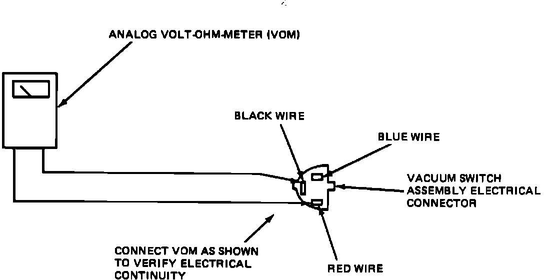 ^ If electrical continuity is observed at 20 +/- 0.5 inches of vacuum, remove the vacuum pump and Volt-Ohm-Meter, replace the vacuum hose and reconnect the wiring connector.