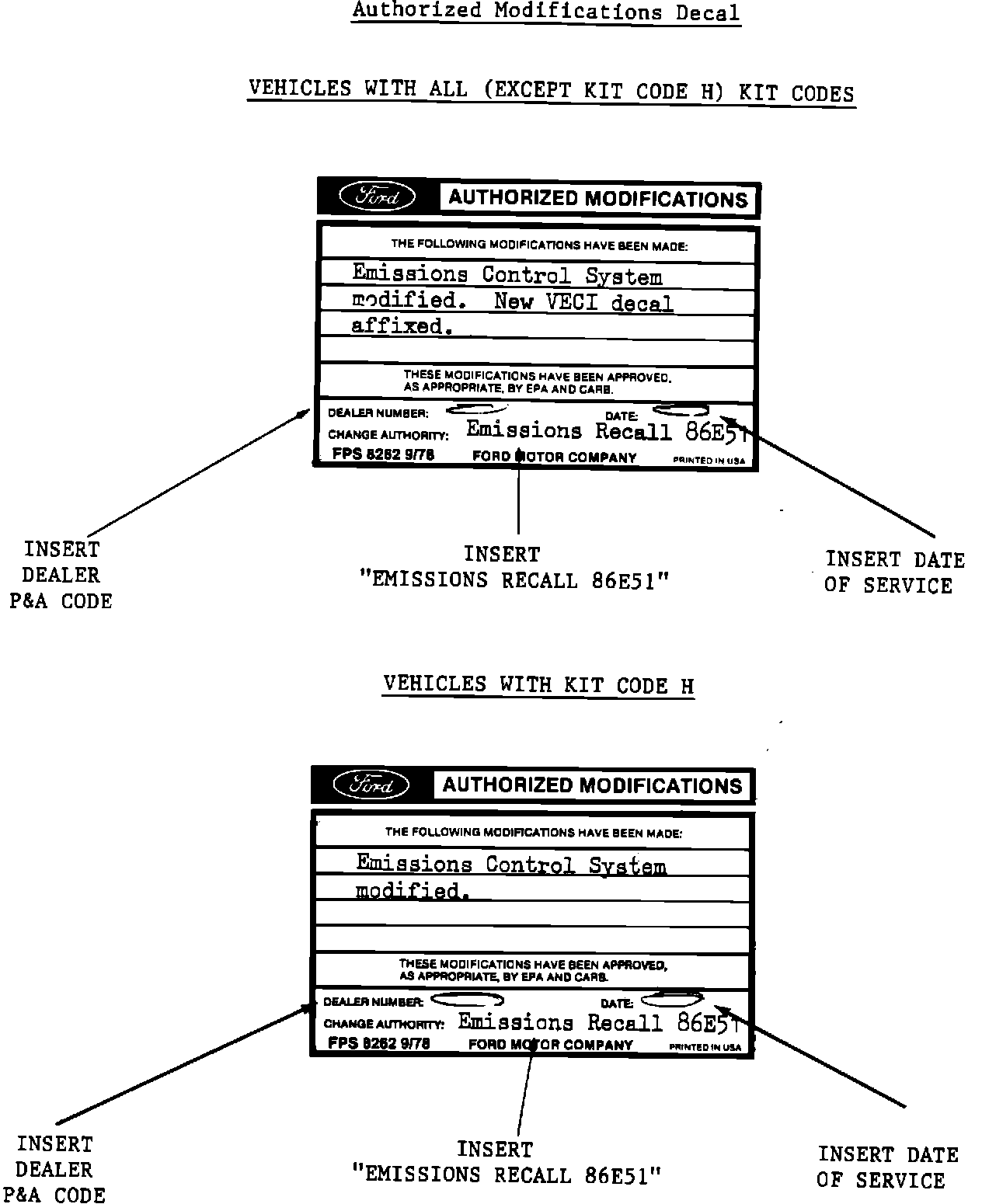 EXHIBIT II - EMISSIONS RECALL 86E51: