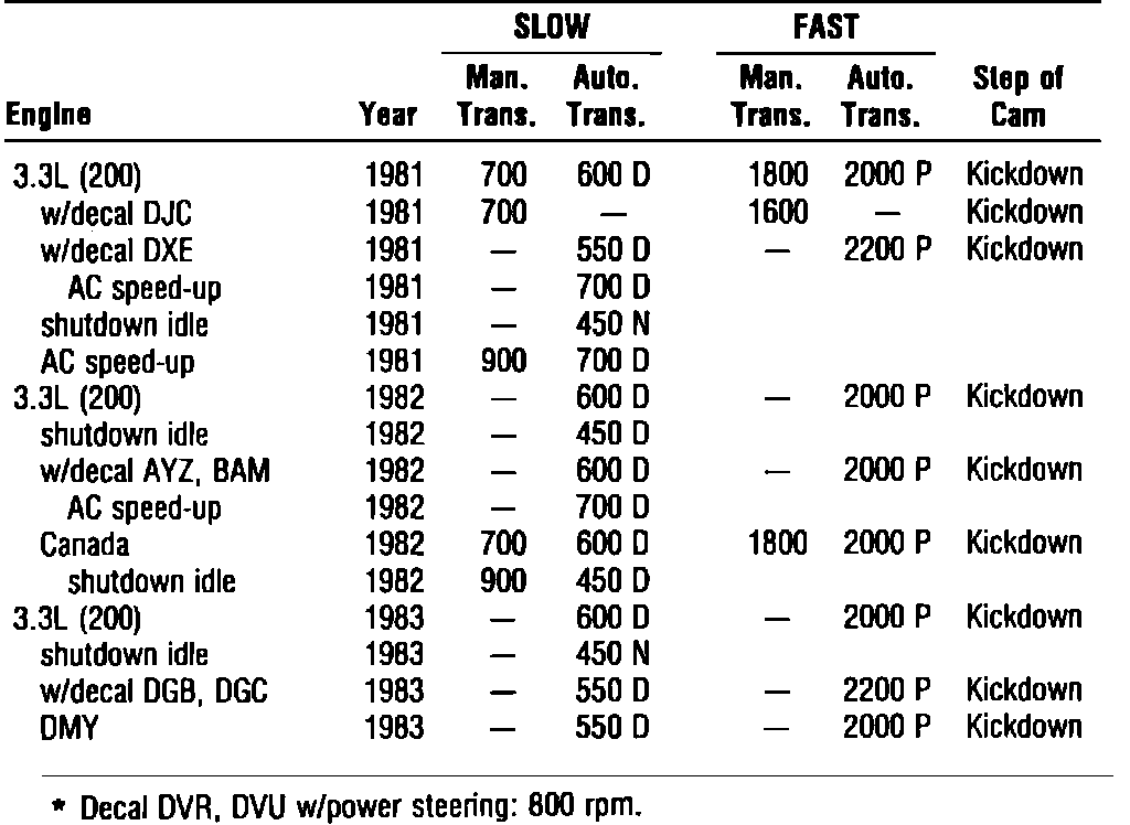 Idle Speed Specifications: