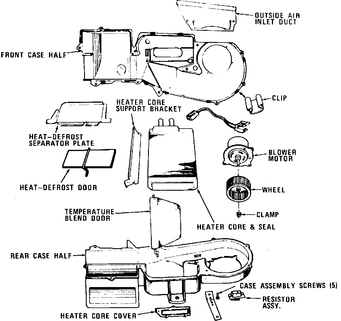 18. Remove heater core and seals from evaporator case.