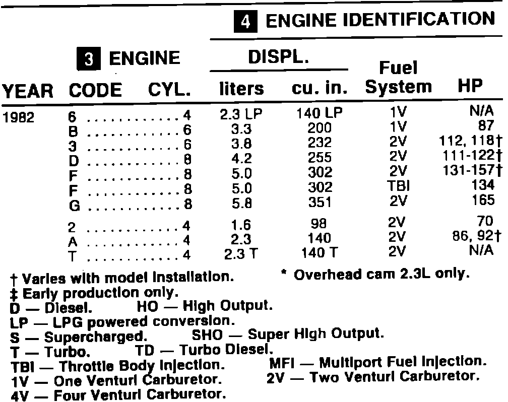 (4) ENGINE IDENTIFICATION: On the line where the engine code appears, read to the right to identify the engine.