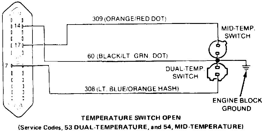 NOTE: Code 53 is for dual temperature switch, circuit 308. Code 54 is for mid-temperature switch, circuit 309.