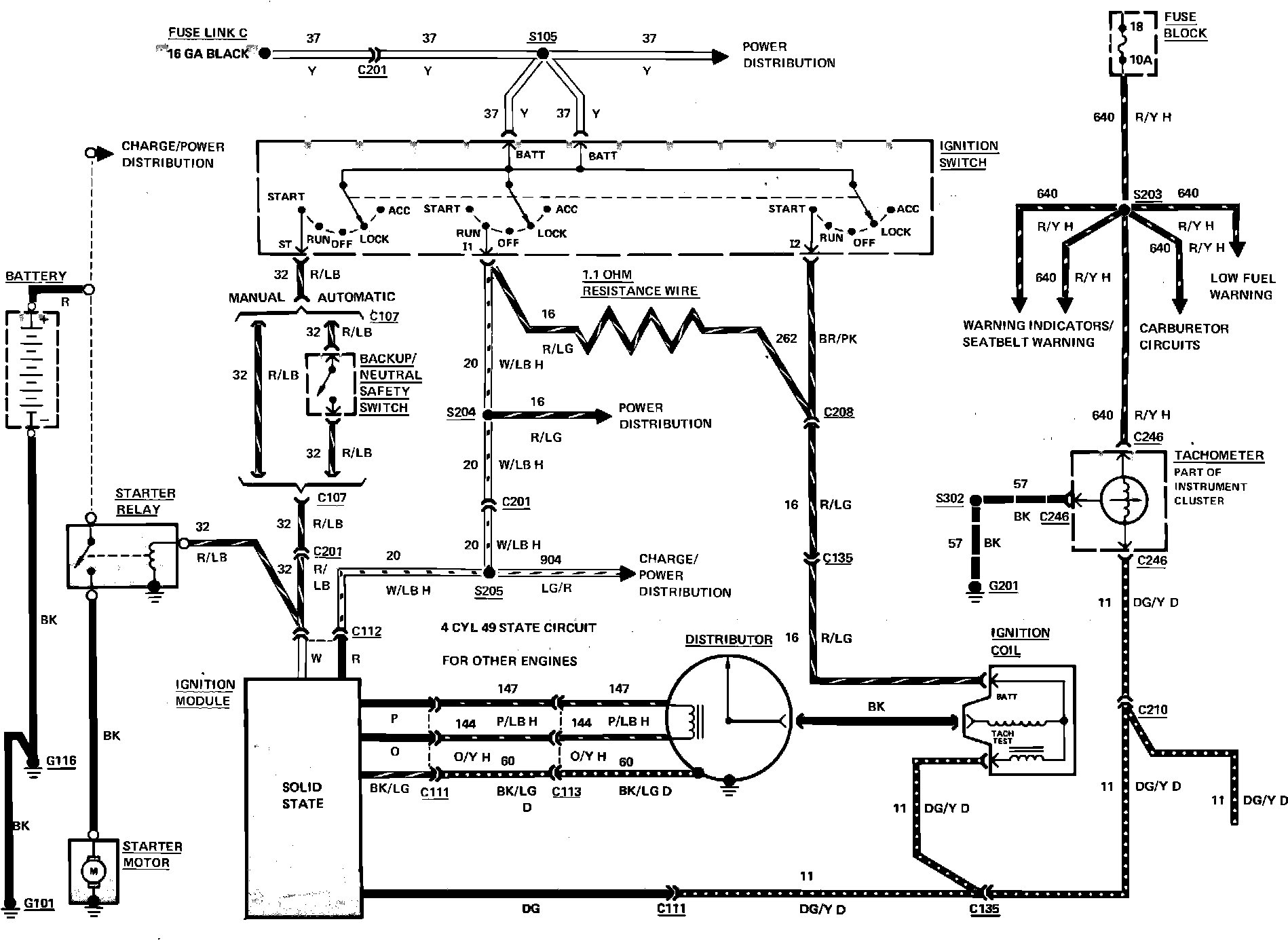 Fig. 43 Ignition, starting system & tachometer wiring circuit (Part 1 of 2). 1983 Capri & Mustang with 6 cyl engine: