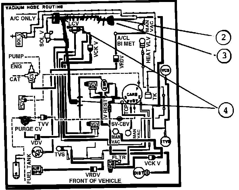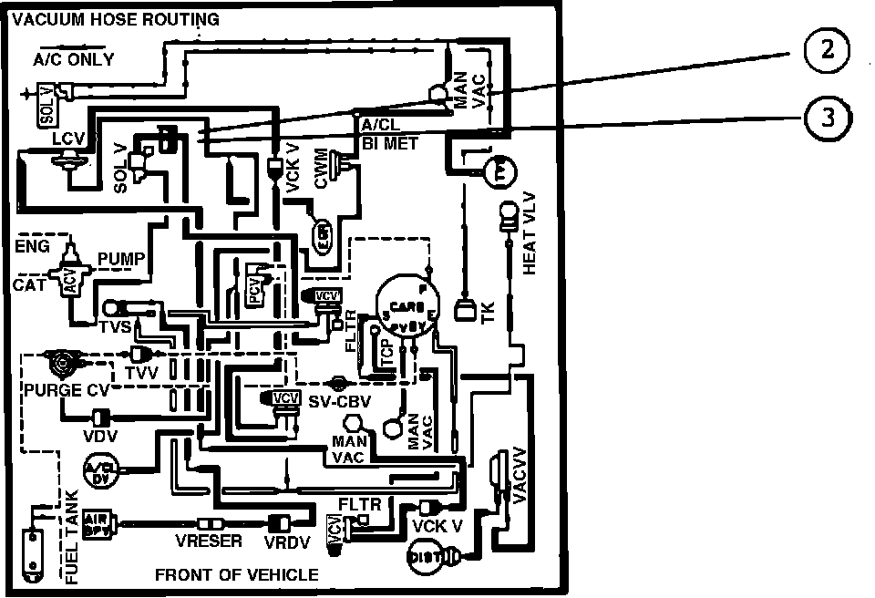 1) Refer to Figure 1. Locate the vacuum hose in the top port of the air control valve solenoid vacuum valve.