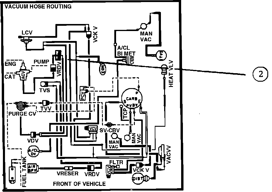 1) Refer to Figure 2. Locate and follow the vacuum line from the air control valve to the brown/white retard delay valve. Disconnect the vacuum hose from the white side of the valve.