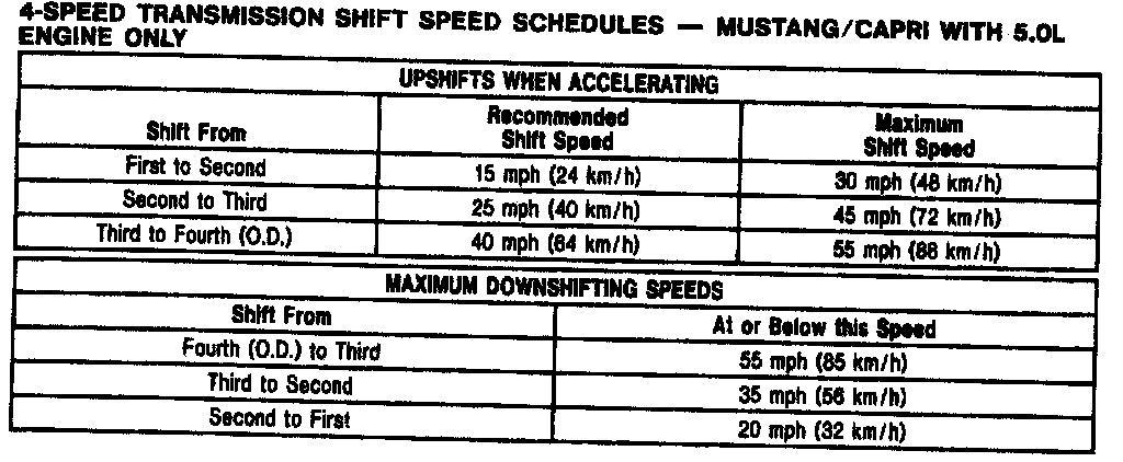 83ET 4-spd M/T, Shift Speeds (Mustang/Capri W/5.0L):