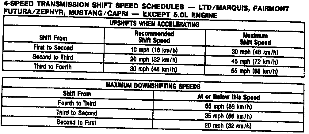 83ET 4-spd M/T, Shift Speeds (w/o 5.0L):