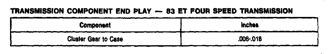 83ET 4-spd M/T, Gear Cluster End Play: