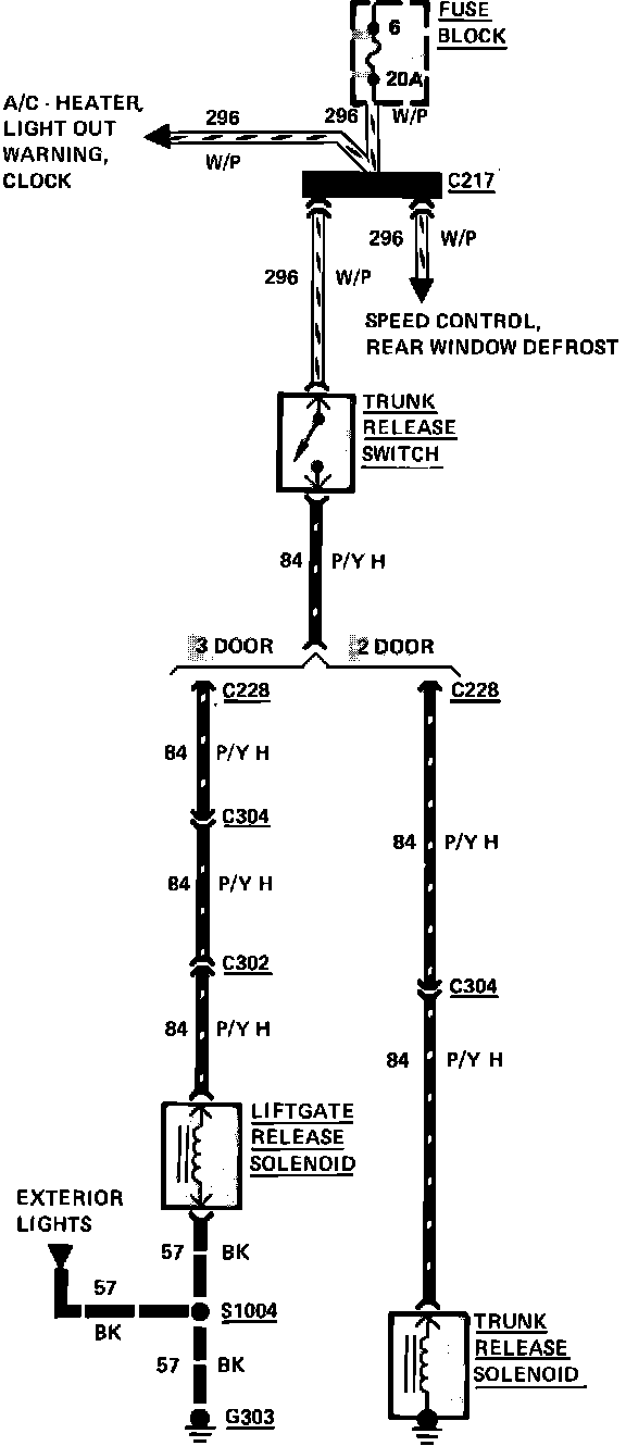 Fig. 54 Liftgate & trunk release wiring circuit. 1983-84 Capri & Mustang: