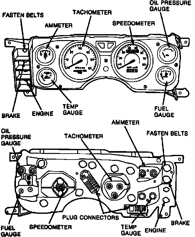 5. Pull cluster from panel slightly and disconnect speedometer cable and the printed circuit electrical connectors.