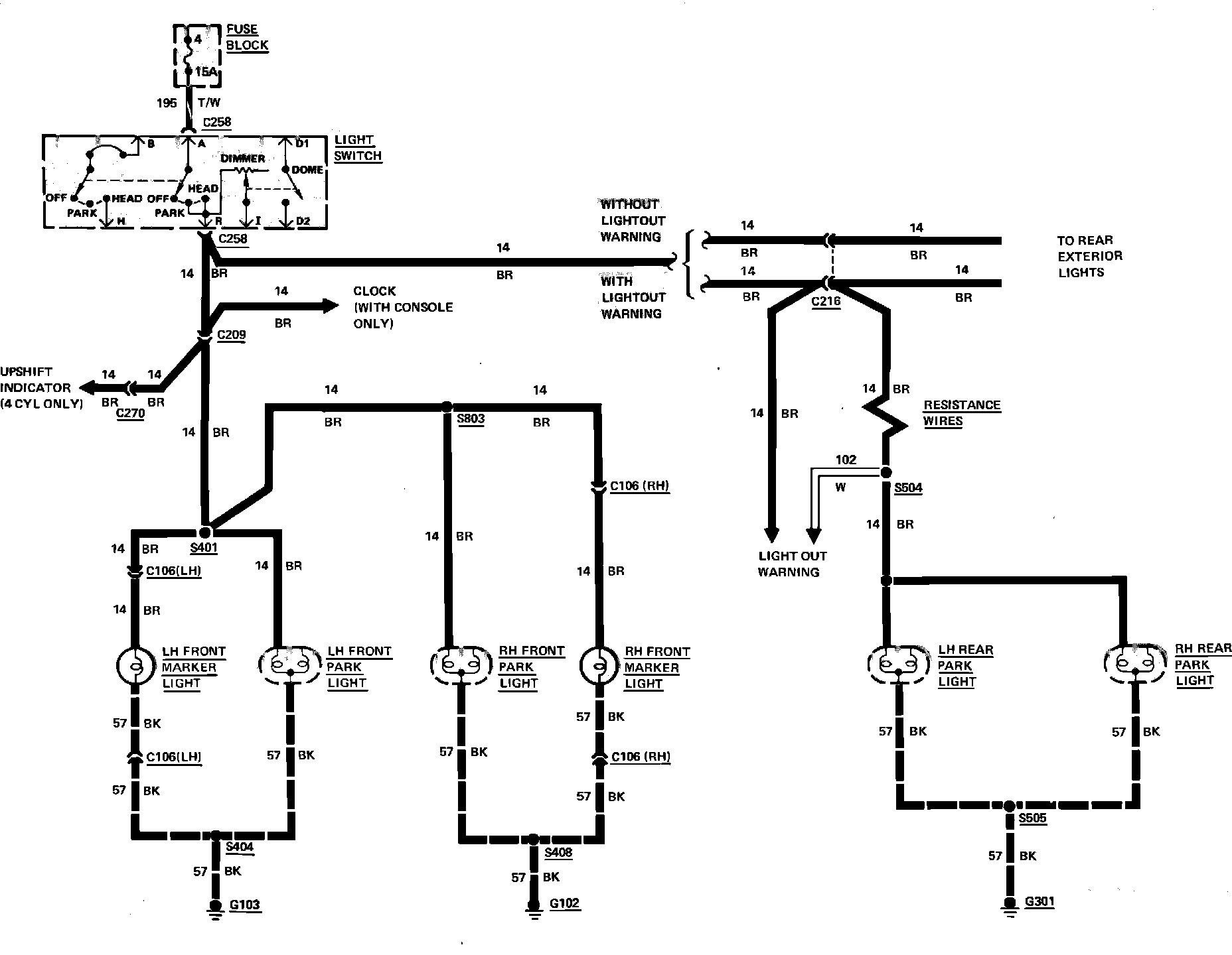 Fig. 56 Marker & park lamp wiring circuit (Part 3 of 3). 1984 Capri & Mustang: