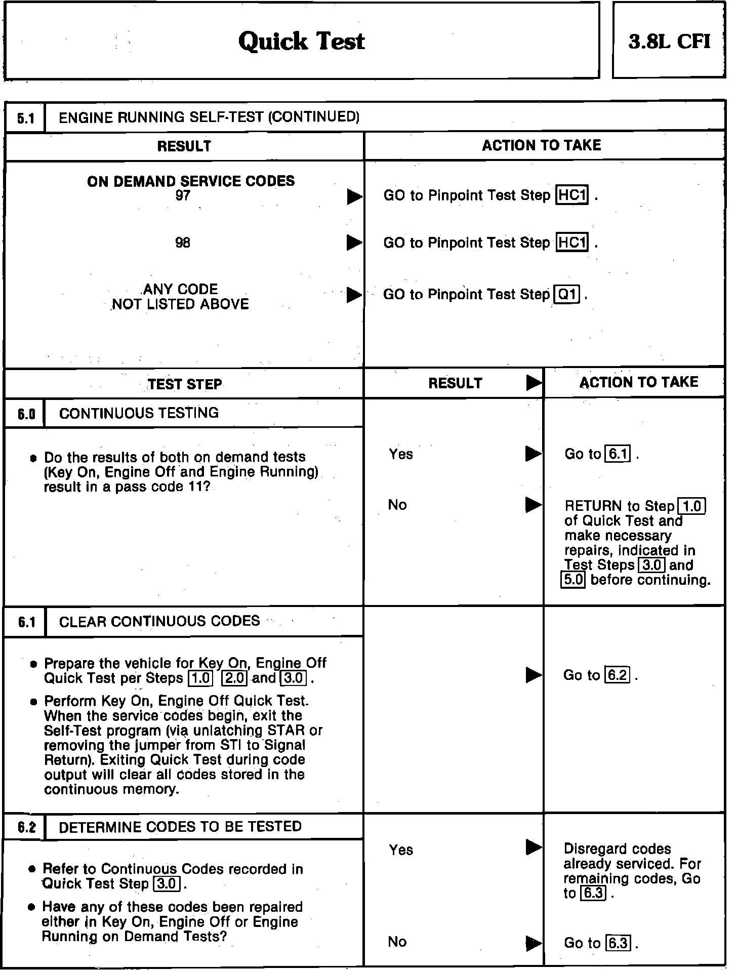 5.1 (Codes), 6.0, 6.1, 6.2 - Engine Running & Continuous Test