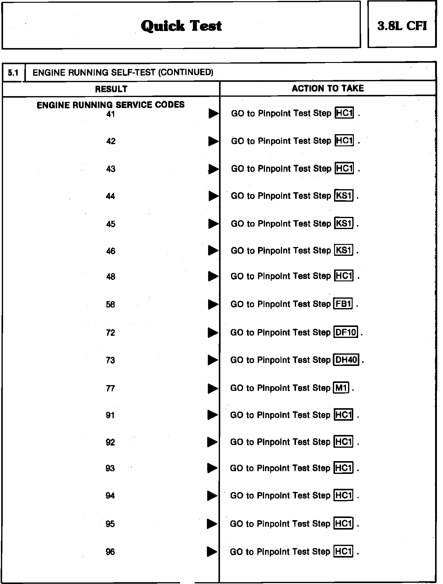Engine Running Self Test And Service Codes 41 - 96 (3.8L CFI):
