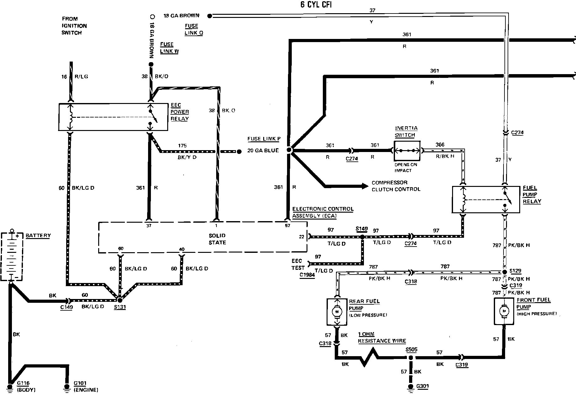 Fig. 29 Electronic engine control wiring circuit (Part 1 of 3). 1984 Capri & Mustang with 6 cyl engine: