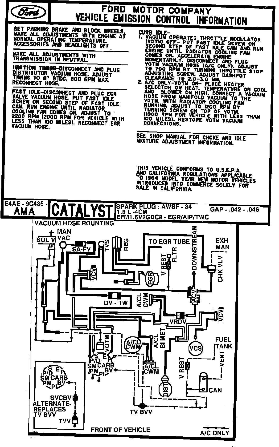 MODEL YEAR: 1984 ENGINE: 1.6L