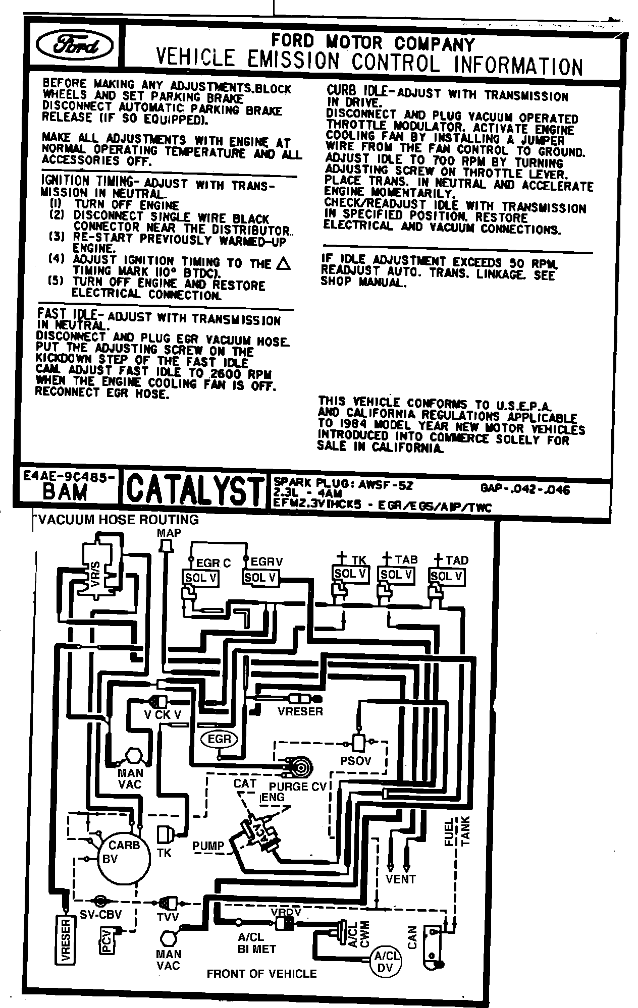 MODEL YEAR: 1984 ENGINE: 3.8L