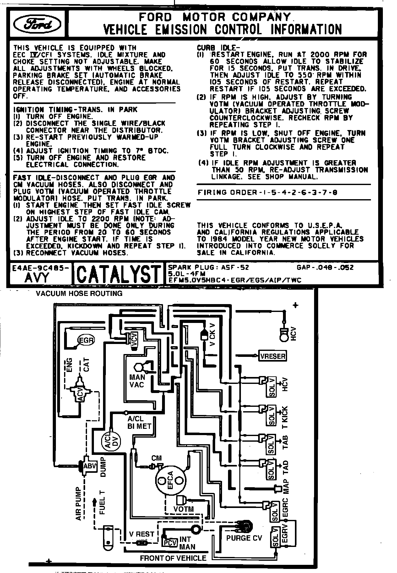 MODEL YEAR: 1984 ENGINE: 5.0L