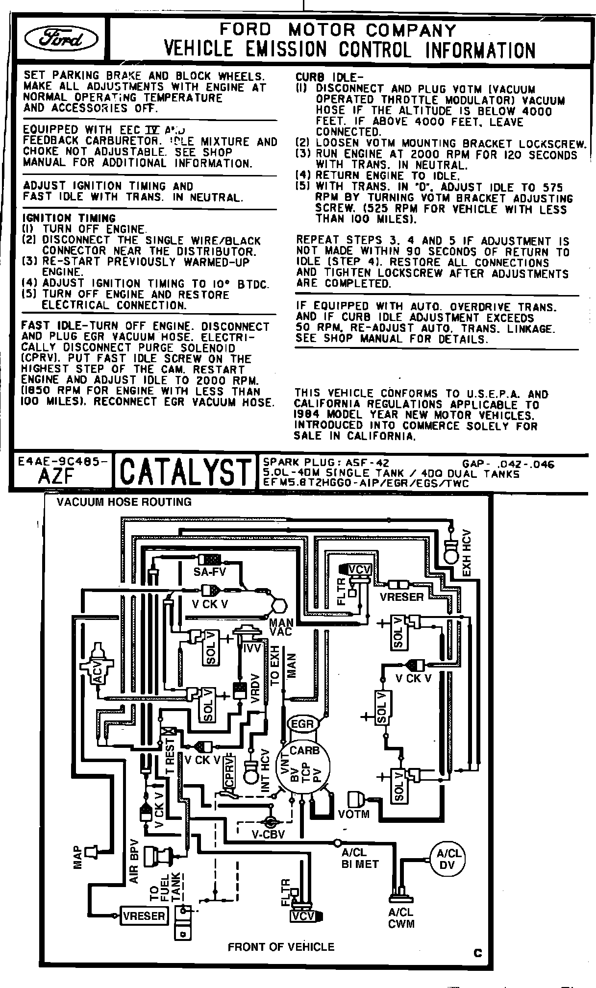 MODEL YEAR: 1984 ENGINE: 5.0L