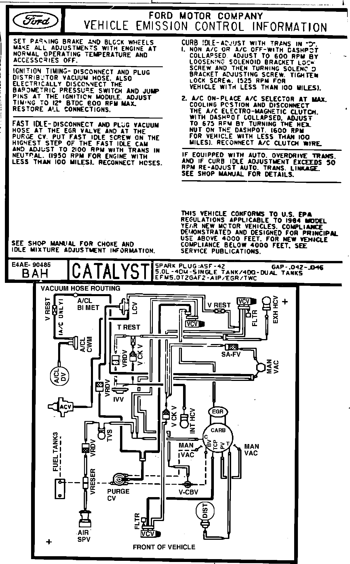 MODEL YEAR: 1984 ENGINE: 5.0L