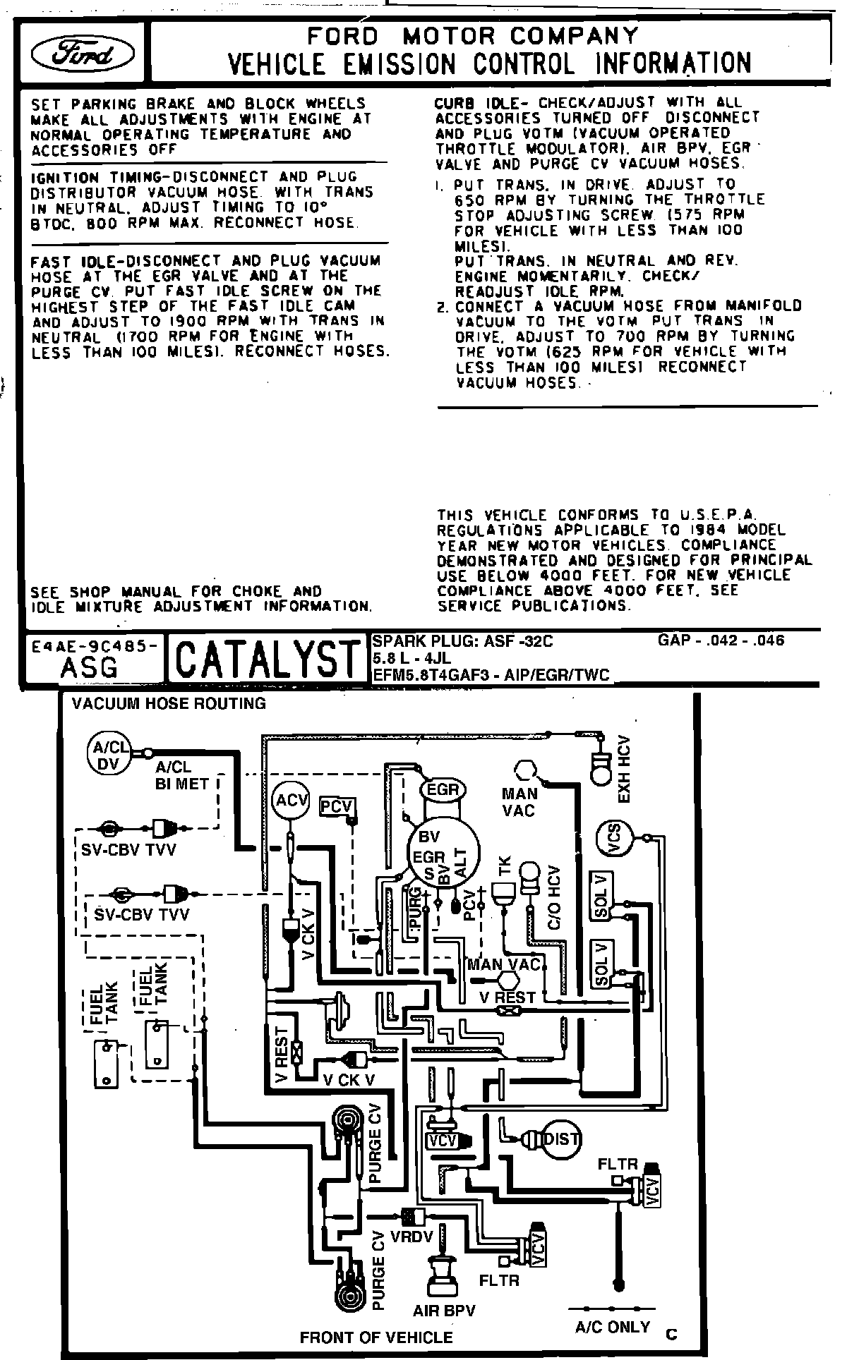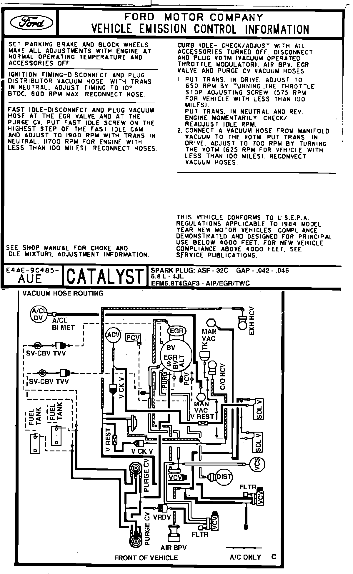 MODEL YEAR: 1984 (E Series) ENGINE: 5.8L
