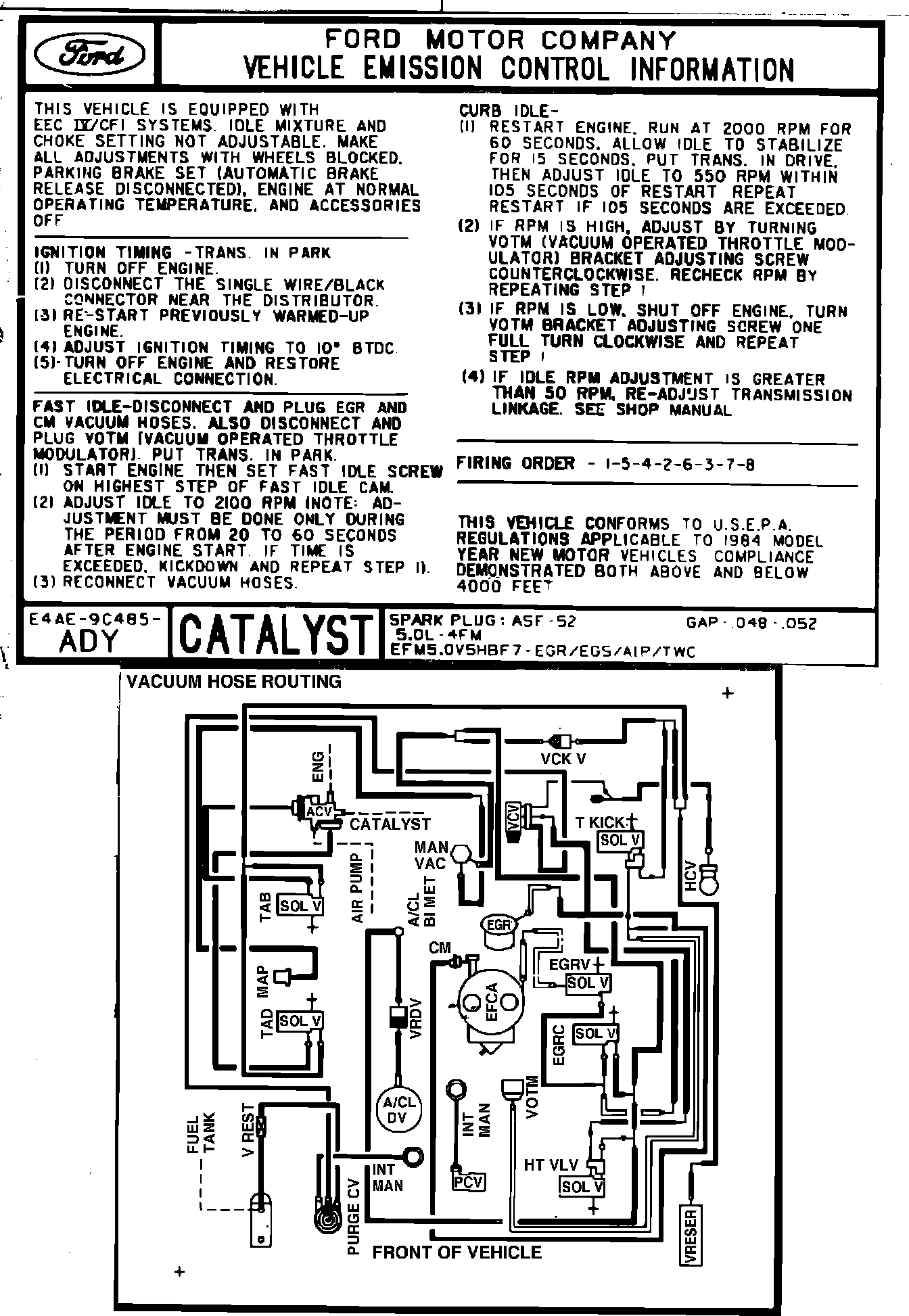 MODEL YEAR: 1984 ENGINE: 5.0L