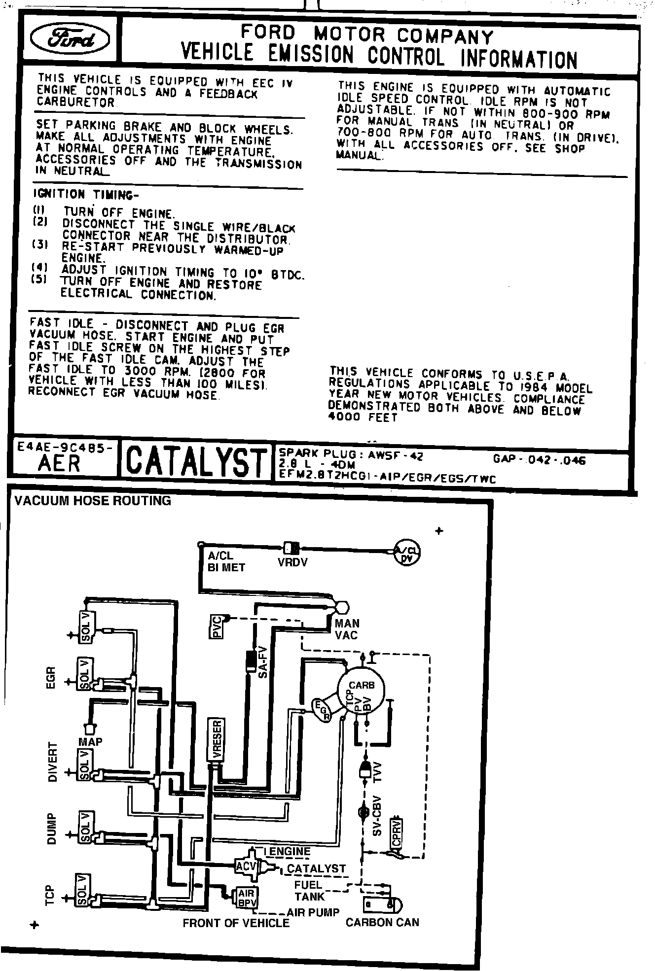 MODEL YEAR: 1984 ENGINE: 2.8L
