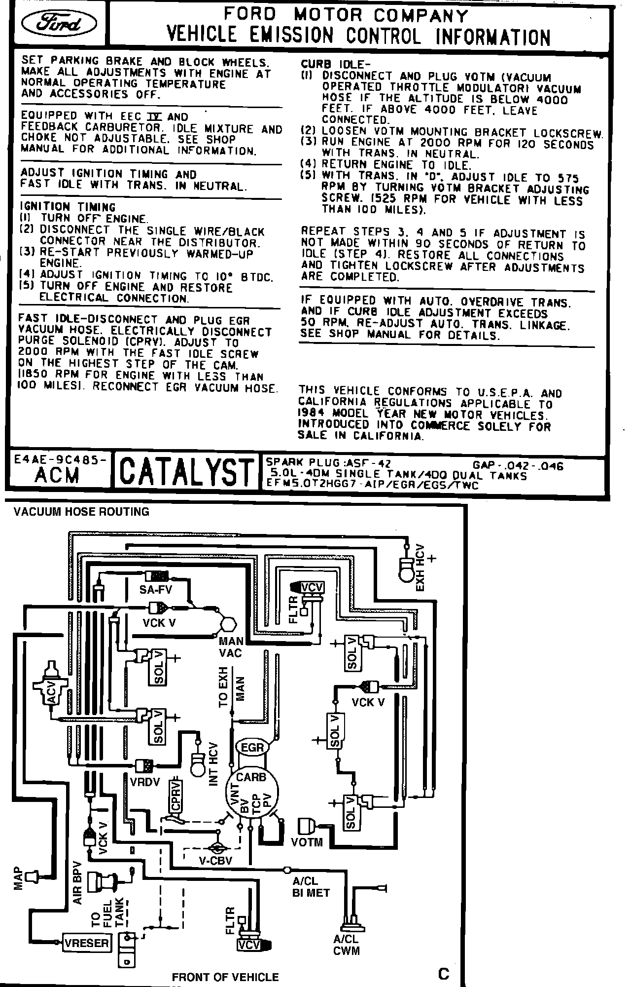 MODEL YEAR: 1984 ENGINE: 5.0L
