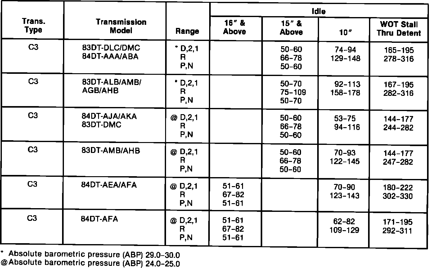 Control Pressure Specifications