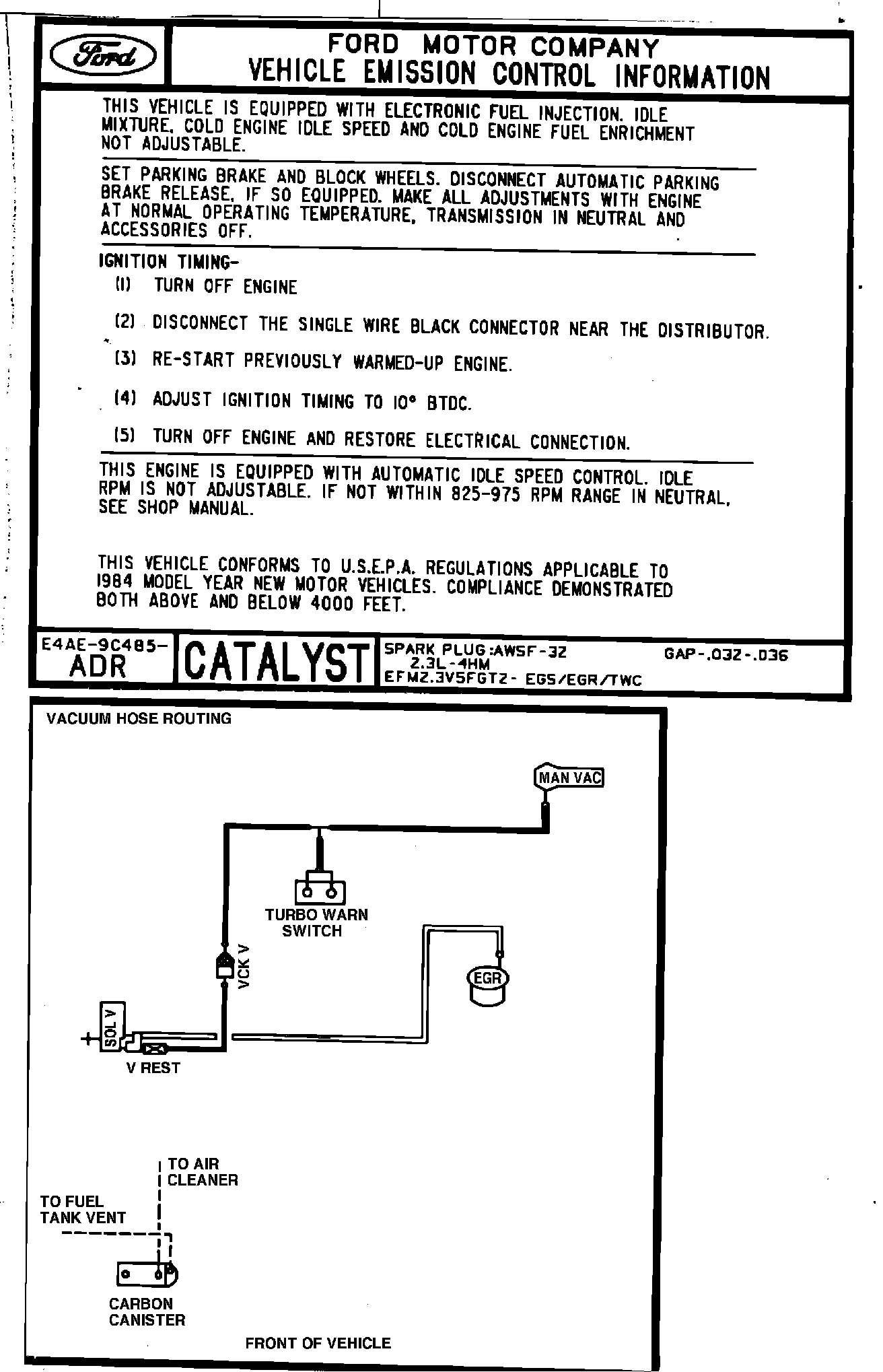 MODEL YEAR: 1984 ENGINE: 2.3L