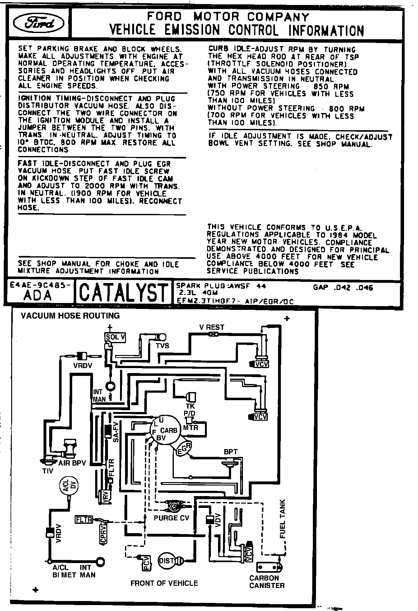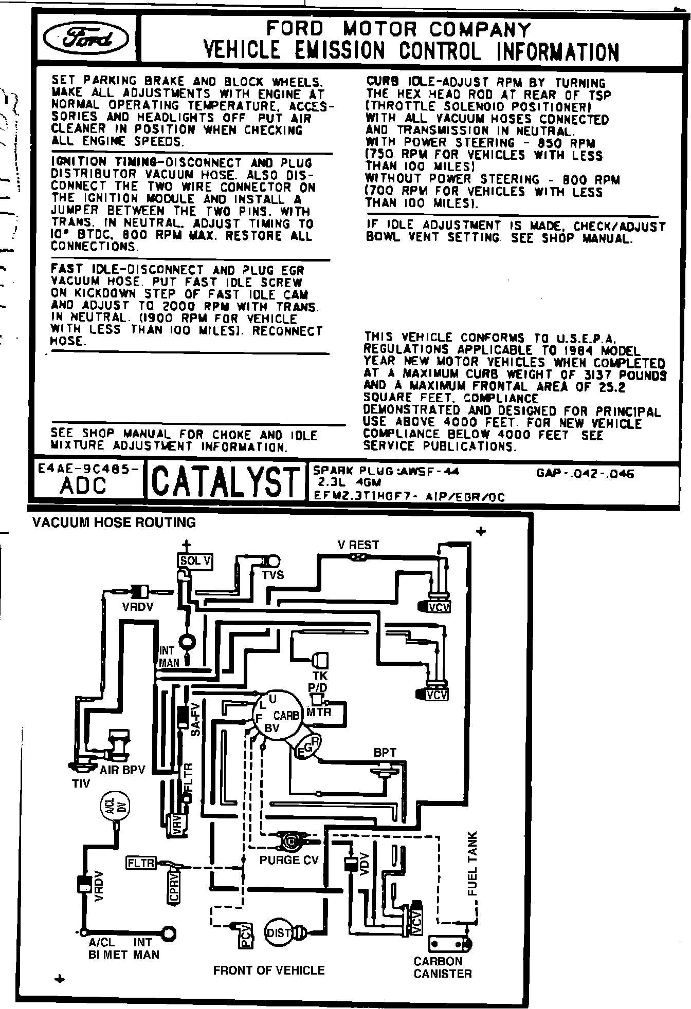MODEL YEAR: 1984 (4 x 4) ENGINE: 2.3L