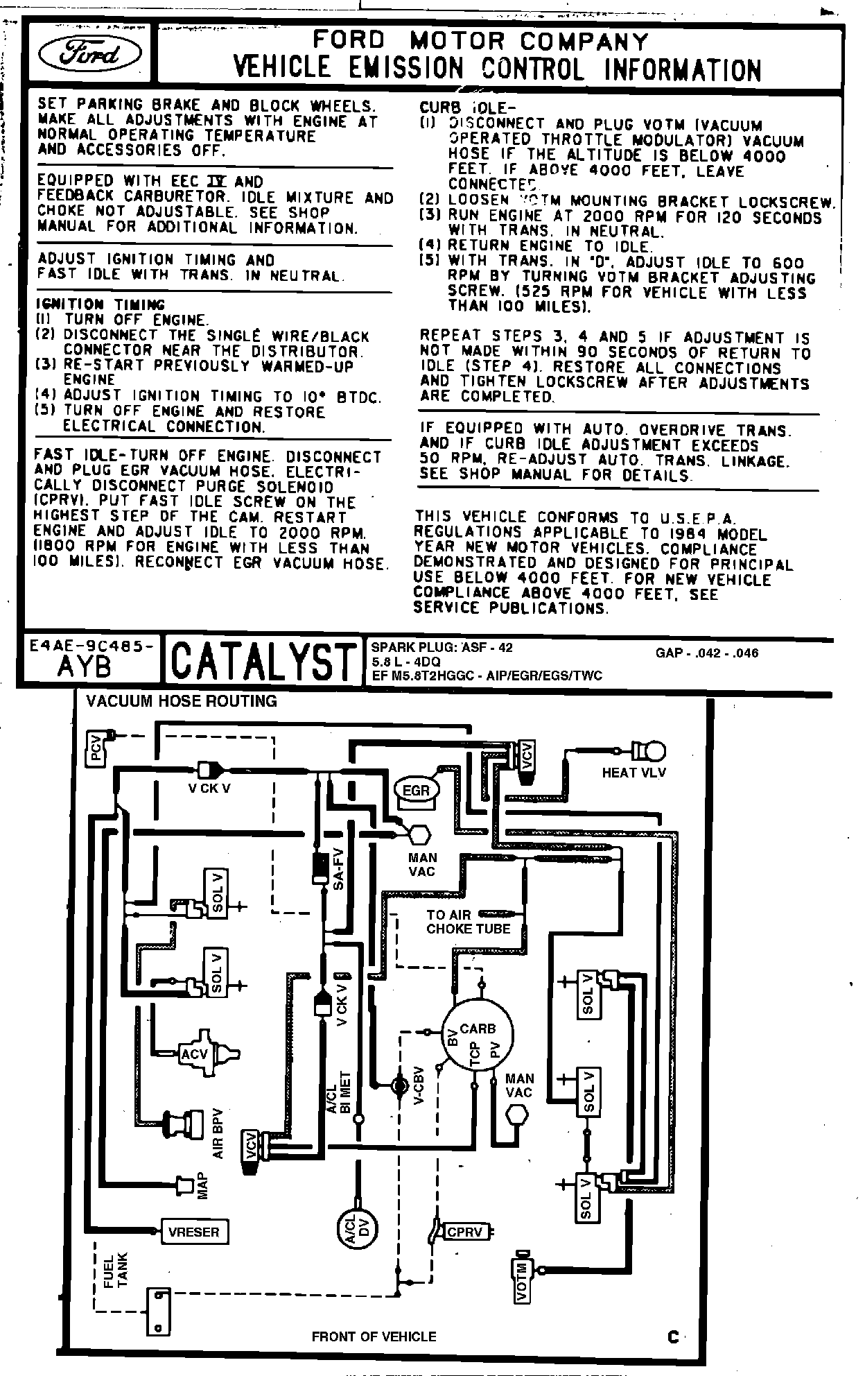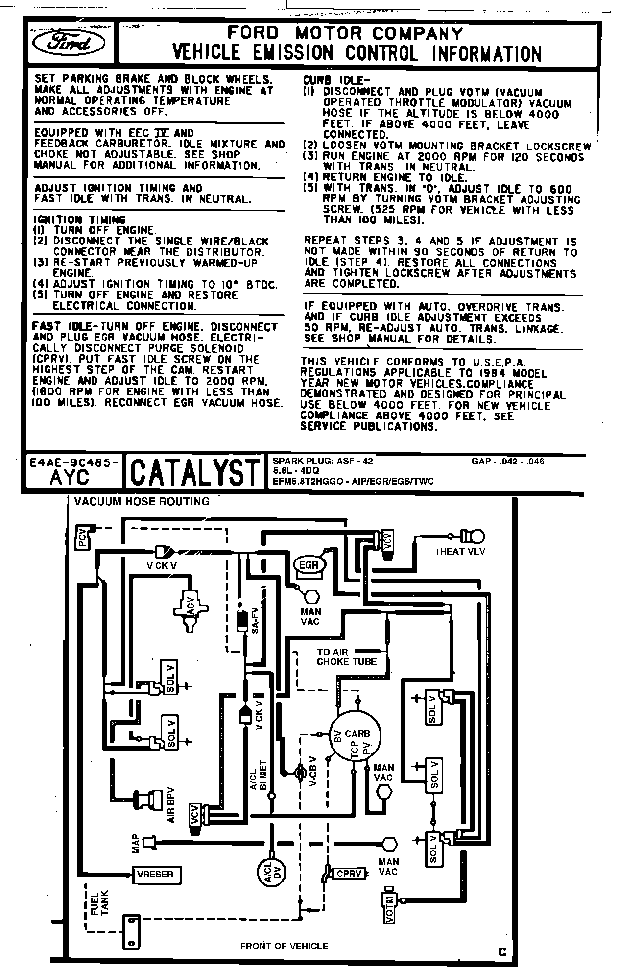 MODEL YEAR: 1984 (E Series) ENGINE: 5.8L