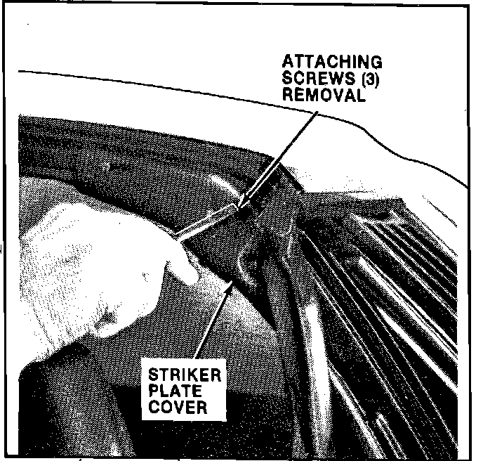 4. Remove the striker plate cover or "B" cap located at the top of the "B" pillar.